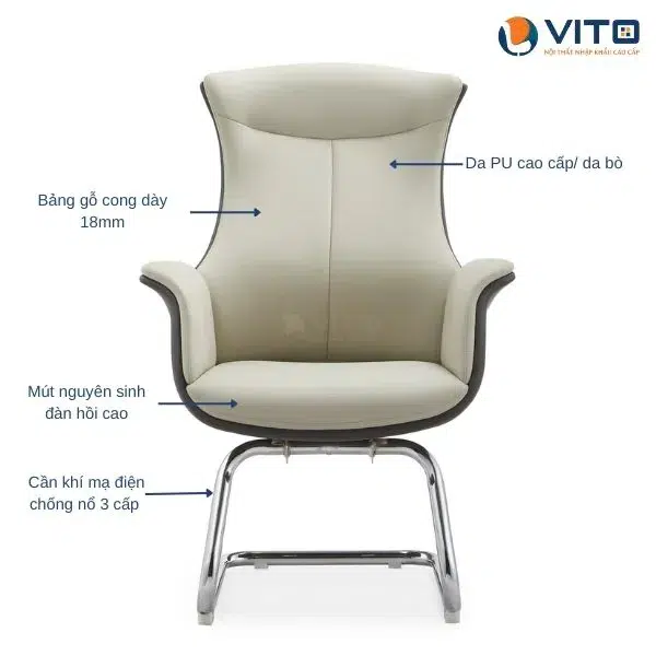 Trong xu thế thiết kế văn phòng chuyên nghiệp, những chiếc ghế phòng họp không chỉ là vật dụng hỗ trợ ngồi làm việc mà còn là yếu tố tạo nên phong thái và sự chuyên nghiệp của doanh nghiệp. Ghế quỳ da Vito GQD-6961D được thiết kế dành riêng cho không gian phòng họp, phòng tiếp khách, hội trường… với vẻ ngoài sang trọng, đường nét hiện đại và chất liệu bền bỉ. Sản phẩm mang đến sự thoải mái cho người sử dụng, đồng thời góp phần xây dựng hình ảnh chỉn chu, đẳng cấp cho đơn vị sở hữu. Quý khách hãy cùng Nội thất Vito khám phá những nét thu hút của mẫu ghế chân quỳ này ngay nhé!
