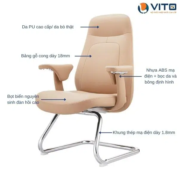Với thiết kế gọn gàng, sang trọng và chắc chắn, Ghế quỳ da Vito GQDV-6838D đặc biệt phù hợp cho các phòng họp, phòng tiếp khách và không gian làm việc cao cấp. Dáng ghế quỳ giúp sắp xếp dễ dàng theo hàng lối, tạo sự đồng bộ và chuyên nghiệp cho văn phòng.