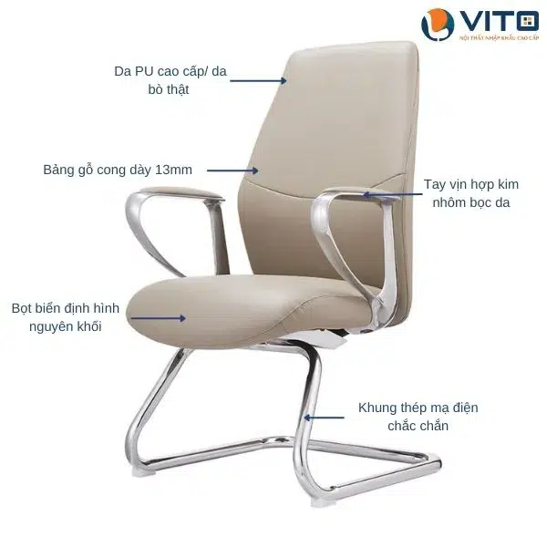 Việc lựa chọn một chiếc ghế phù hợp không chỉ dừng lại ở sự tiện lợi mà còn thể hiện phong cách, vị thế và sự chuyên nghiệp. Ghế quỳ da Vito GQV-1813D là dòng sản phẩm nổi bật, được thiết kế với kiểu dáng sang trọng, chất liệu cao cấp cùng độ bền vượt trội. Đây chính là mẫu ghế không thể thiếu trong các phòng họp, phòng lãnh đạo hay khu vực tiếp khách, nơi mà sự thoải mái và hình ảnh chuyên nghiệp luôn được đặt lên hàng đầu. Hãy cùng Nội thất Vito khám phá chi tiết về mẫu ghế quỳ da này ngay nhé!