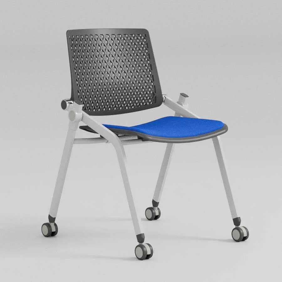 Cơ chế gấp gọn thông minh cho phép người dùng dễ dàng xếp ghế lại khi không sử dụng, tiết kiệm không gian lưu trữ tối đa. Điều này đặc biệt hữu ích trong các phòng hội thảo có quy mô lớn, nơi mà số lượng ghế cần dùng thường xuyên thay đổi theo từng sự kiện. Bánh xe nhựa linh hoạt xoay 360 độ.