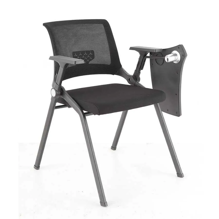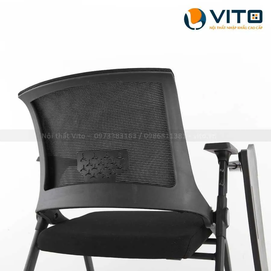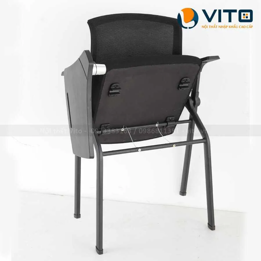 | Kiểu dáng | Thiết kế hiện đại, tiện dụng hợp với dáng người sử dụng, đáp ứng nhu cầu làm việc trong văn phòng, phòng đào tạo hoặc những cuộc họp, hội thảo kéo dài nhưng không gây mỏi lưng. Thiết kế tay vịn hiện đại tăng tính thẩm mỹ, giúp người ngồi thoải mái hơn. Ghế kèm bàn thông minh tiện dụng, giúp người ngồi có thể ghi chép dễ dàng. |