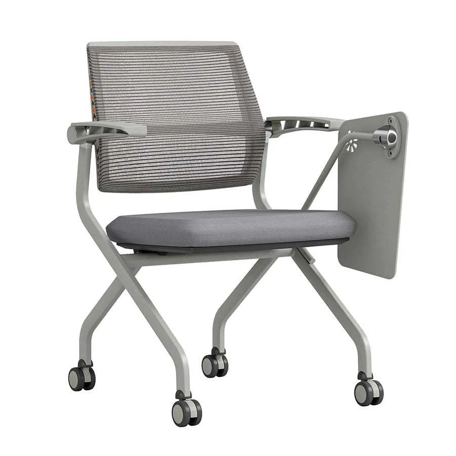 | Chất liệu | Khung thép sơn tĩnh điện màu ghi, chân ghế ống dẹt 18×32, độ dày thành chân 1.4mm Tựa lưng khung bằng bọc vải lưới, đệm ngồi mút bọc vải êm ái, có tay vịn. Các khớp nối và bàn viết bằng hợp kim nhôm chắc chắn |