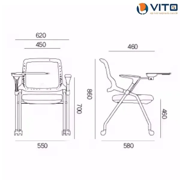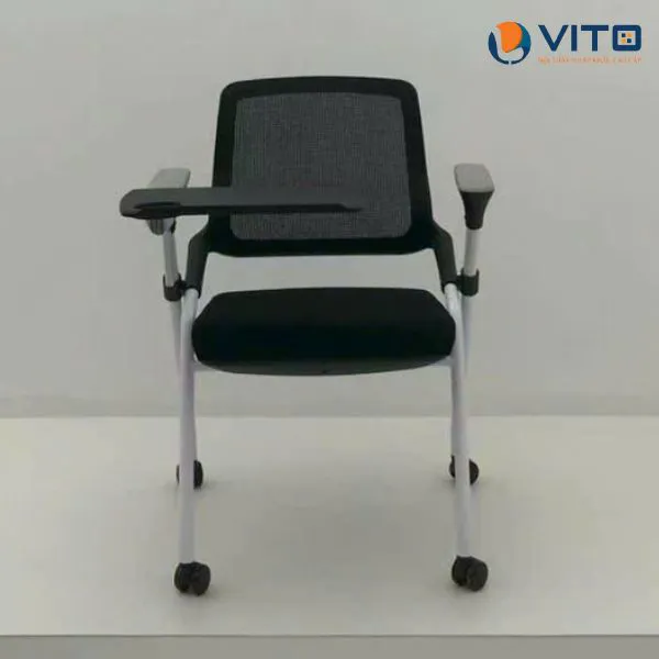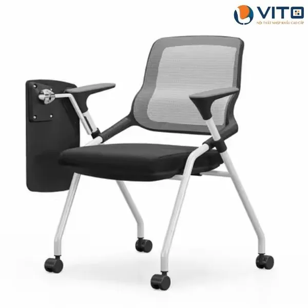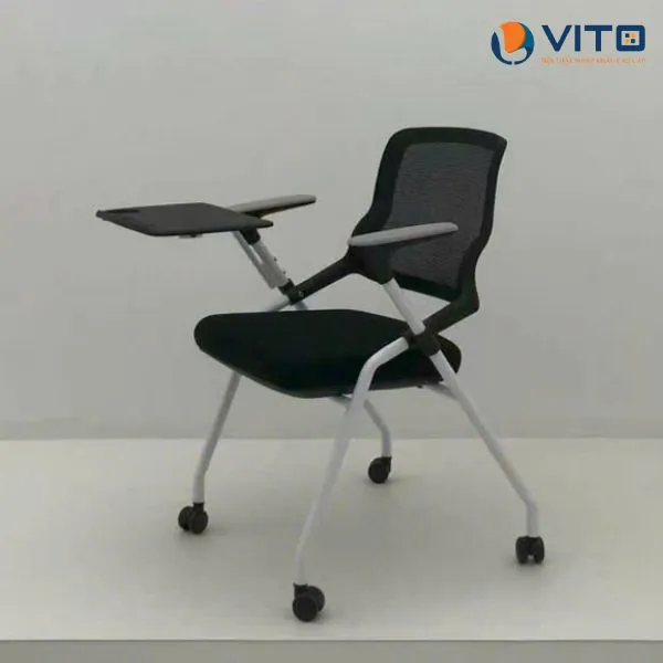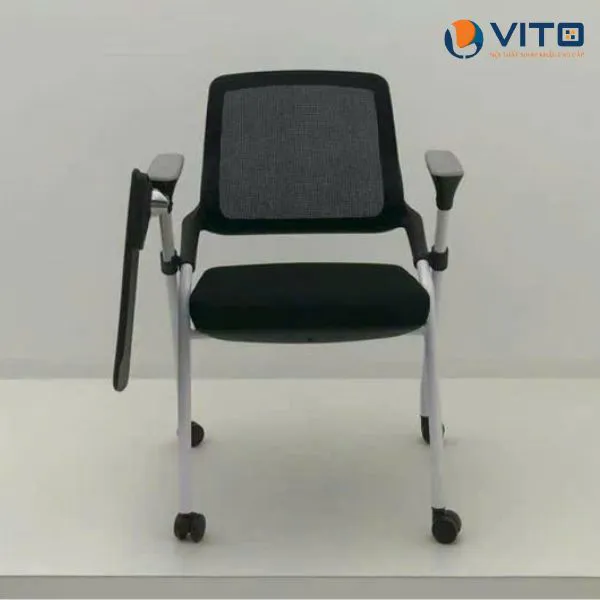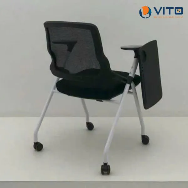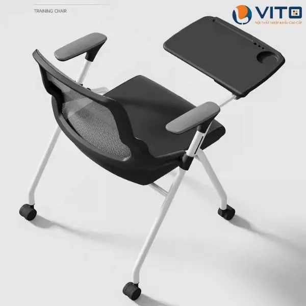 Một trong những điểm nổi bật giúp ghế training Vito GTV-640BL-D vượt trội hơn so với nhiều mẫu ghế khác trên thị trường chính là bàn viết gấp gọn được tích hợp trực tiếp vào khung ghế. Bàn được làm từ chất liệu nhựa PP cao cấp hoặc gỗ công nghiệp phủ laminate (tùy phiên bản), có khả năng chống trầy xước, dễ lau chùi và cho cảm giác chắc chắn khi sử dụng.