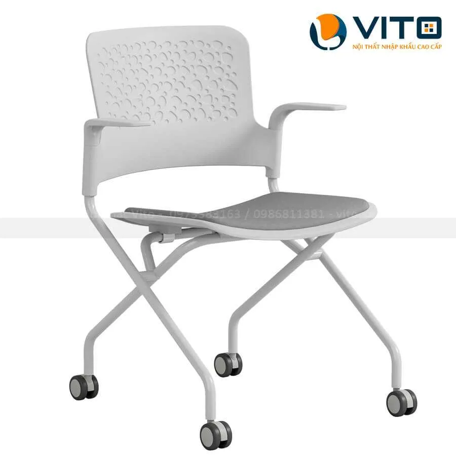 Tay ghế được đặt ở độ cao vừa phải, tạo nên sự cân đối về mặt thẩm mỹ lẫn công năng. Điểm cộng lớn nhất khiến Ghế training Vito GTV-BG-830L trở thành lựa chọn ưu việt trong các không gian đào tạo chính là khả năng gập gọn vô cùng linh hoạt. Phần lưng ghế có thể gập lại dễ dàng, tạo điều kiện thuận tiện cho việc xếp chồng hoặc di chuyển, đặc biệt phù hợp trong các không gian thường xuyên thay đổi bố trí như phòng họp, hội thảo, trung tâm huấn luyện. Việc gập gọn giúp tiết kiệm diện tích cất trữ, đồng thời tăng tính cơ động cho không gian, điều mà các dòng ghế truyền thống không thể đáp ứng.