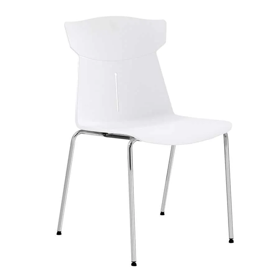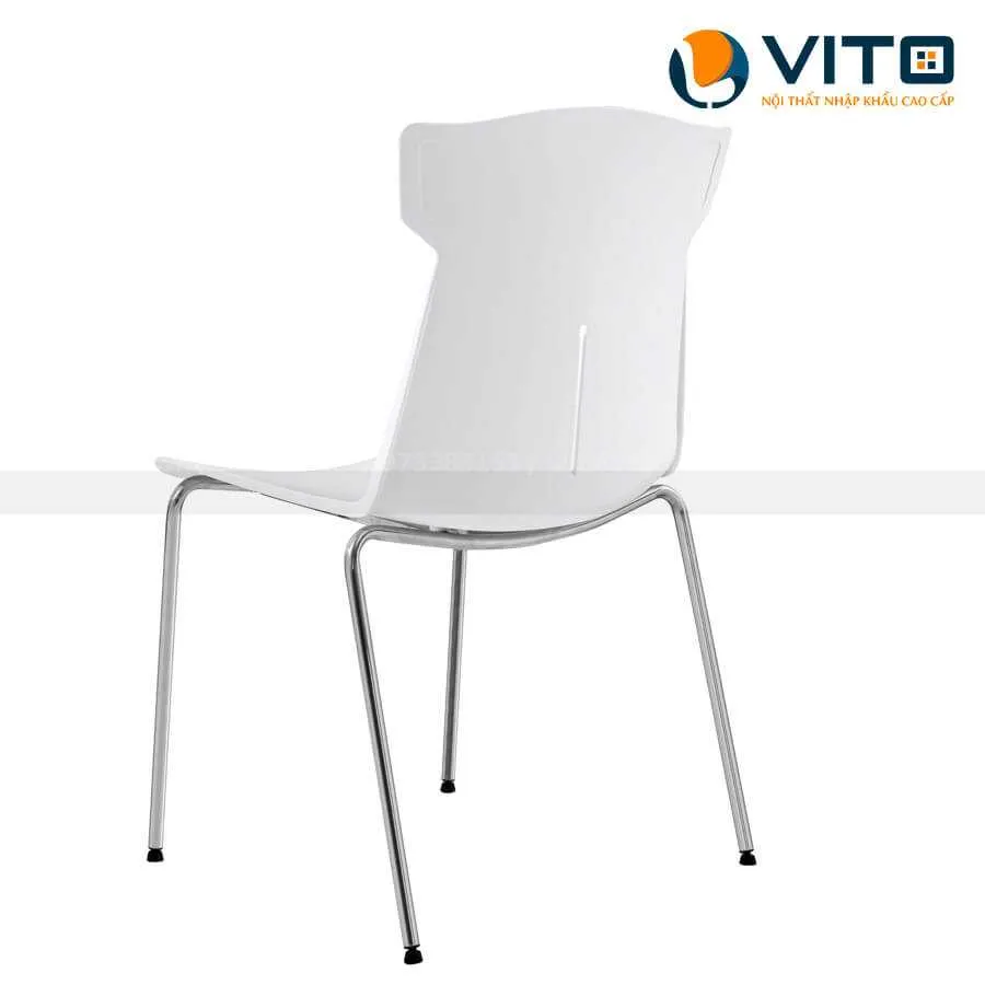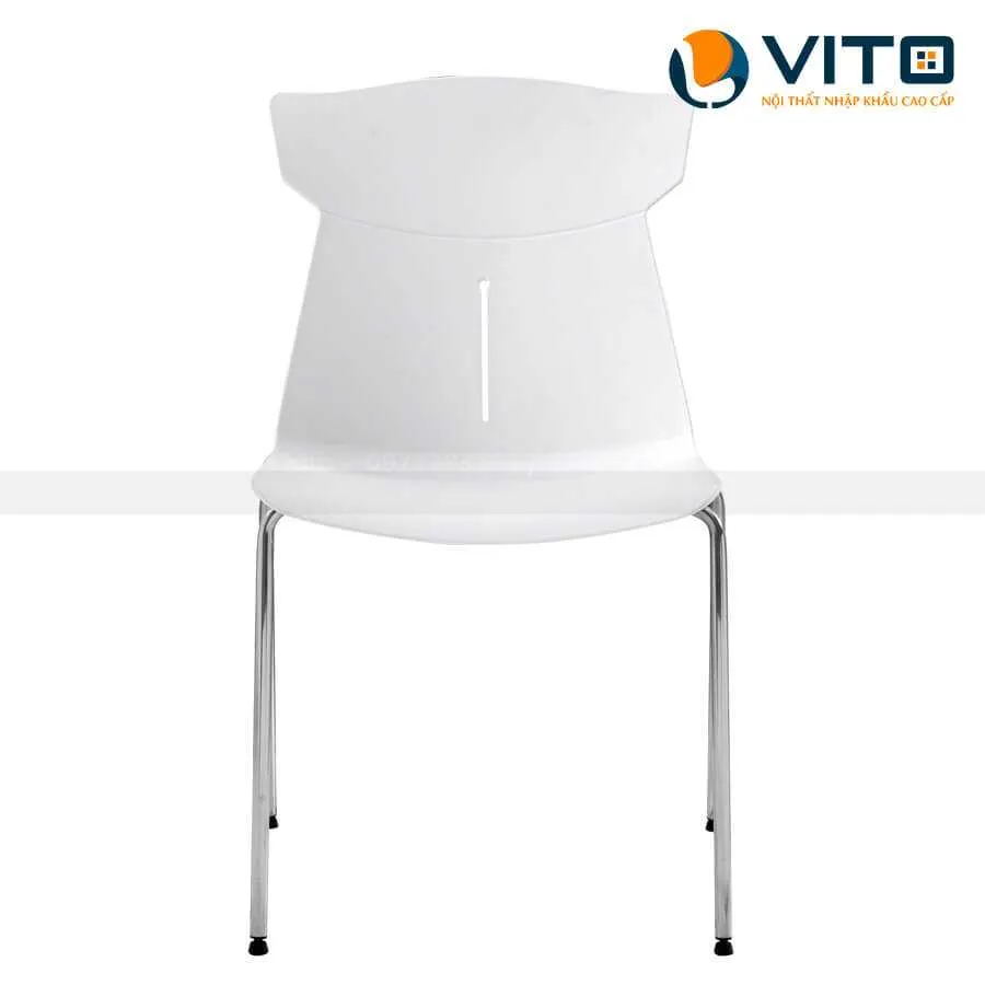 Ghế training Vito GTV-BG-961 gây ấn tượng mạnh bởi phong cách tối giản nhưng rất hiện đại, phù hợp với nhiều loại hình không gian nội thất khác nhau. Mẫu ghế này sở hữu các đường nét thanh mảnh nhưng chắc chắn, không chỉ đảm bảo tính thẩm mỹ mà còn mang lại sự linh hoạt cao trong quá trình sử dụng. Tựa lưng của ghế có thiết kế cong nhẹ, bo theo dáng người ngồi nhằm nâng đỡ cột sống, giảm áp lực lên lưng và tăng cường sự thoải mái khi sử dụng trong thời gian dài. Chân ghế trắng mang đến vẻ ngoài năng động và hiện đại. Bốn chân ghế đều có nút nhựa chống trượt, giữ cho ghế cố định tốt trên sàn mà không gây trầy xước.