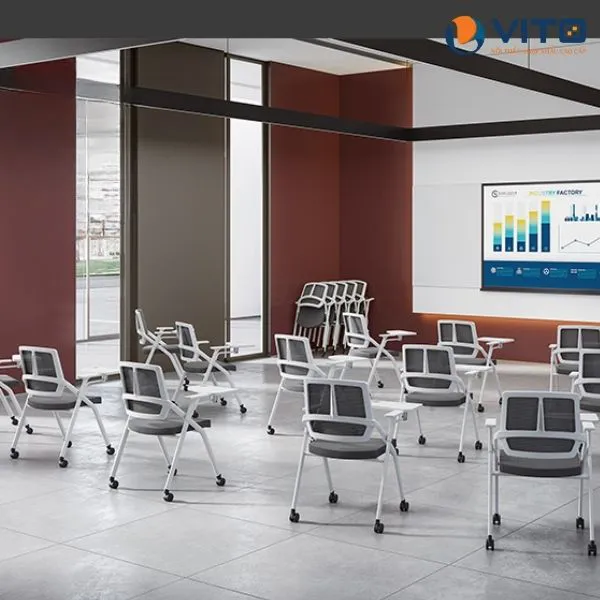 Ghế training Vito GTV-D362-1-B không chỉ phù hợp với các trung tâm đào tạo mà còn được ứng dụng rộng rãi tại phòng họp công ty, không gian làm việc nhóm, phòng hội thảo, trường học, thư viện, phòng lab, thậm chí là trong các không gian chờ cơ quan hành chính. Sự linh hoạt trong thiết kế và kiểu dáng giúp ghế có thể thích nghi với nhiều phong cách nội thất khác nhau, từ hiện đại, tối giản cho đến chuyên nghiệp và trang trọng.