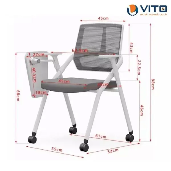 | Chức năng ghế | Ghế chân có bánh xe tĩnh âm 50mm, đệm có thể gập được, ghế có thể gấp gọn hoàn toàn. |