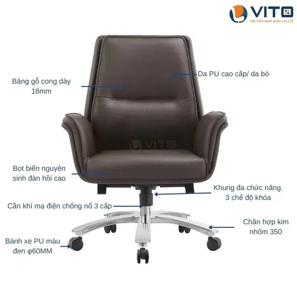 Thông tin chi tiết sản phẩm Ghế xoay da Vito GXV-6967B: