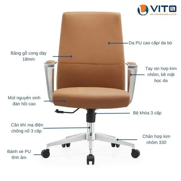 Thông tin chi tiết sản phẩm Ghế xoay da Vito GXV-6983B: