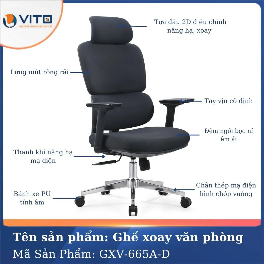 Trong không gian làm việc hiện đại, một chiếc ghế văn phòng không chỉ là vật dụng nội thất thông thường mà còn đóng vai trò quan trọng trong việc hỗ trợ sức khỏe, nâng cao hiệu suất làm việc. Mẫu ghế xoay văn phòng GXV-665A-D chính là sự lựa chọn lý tưởng cho những ai đang tìm kiếm sự thoải mái, thẩm mỹ và chất lượng vượt trội. Hãy cùng Vito khám phá chi tiết về chất lượng của mẫu ghế này ngay nhé!