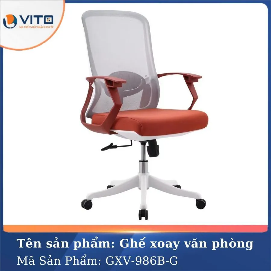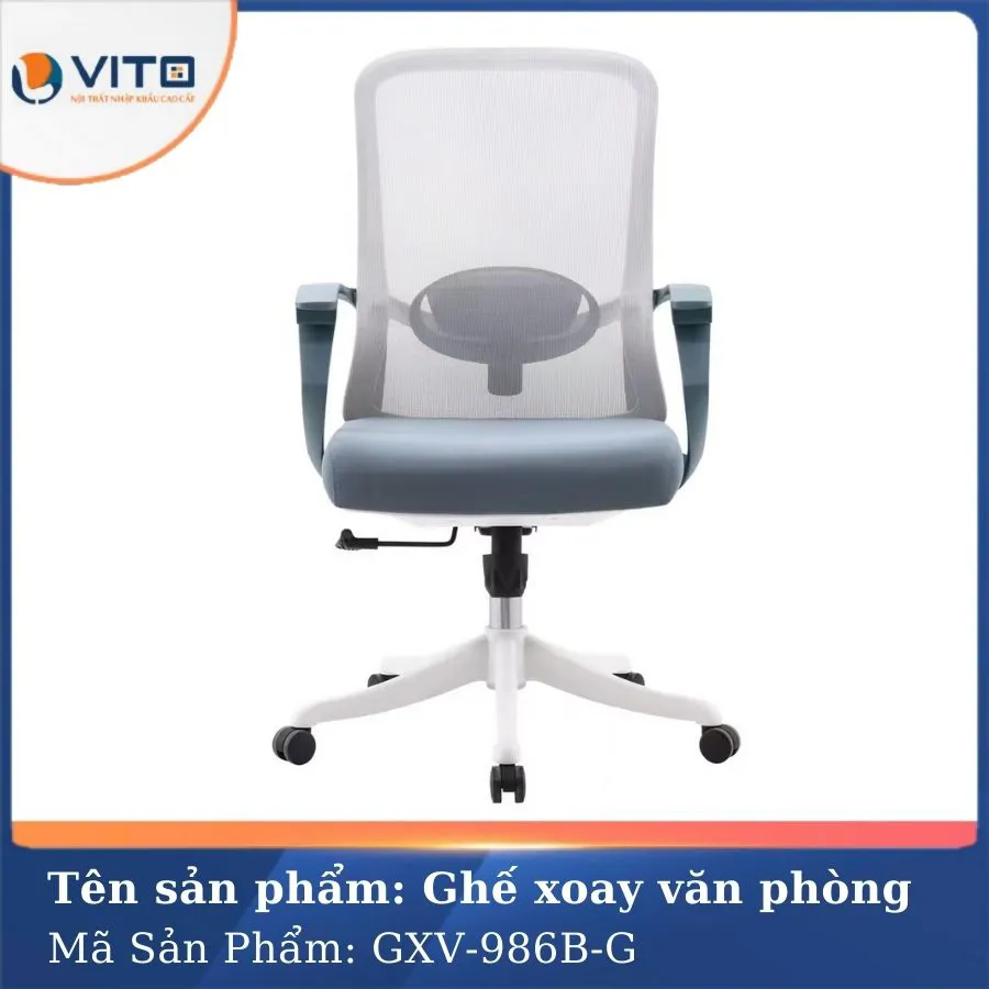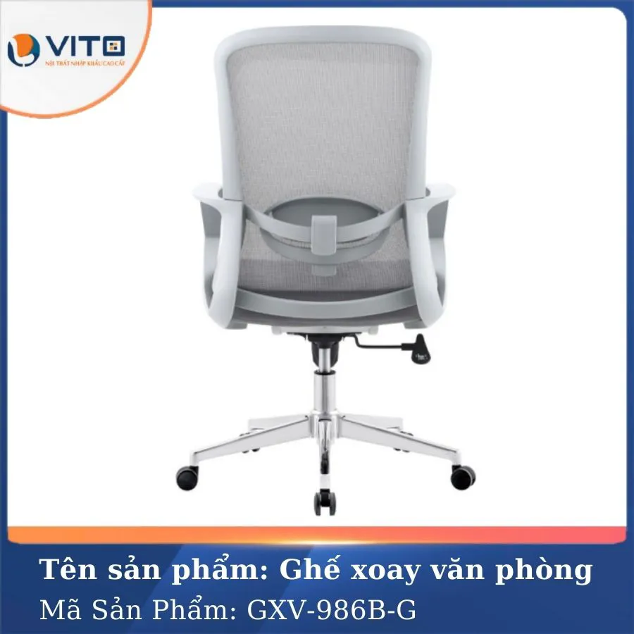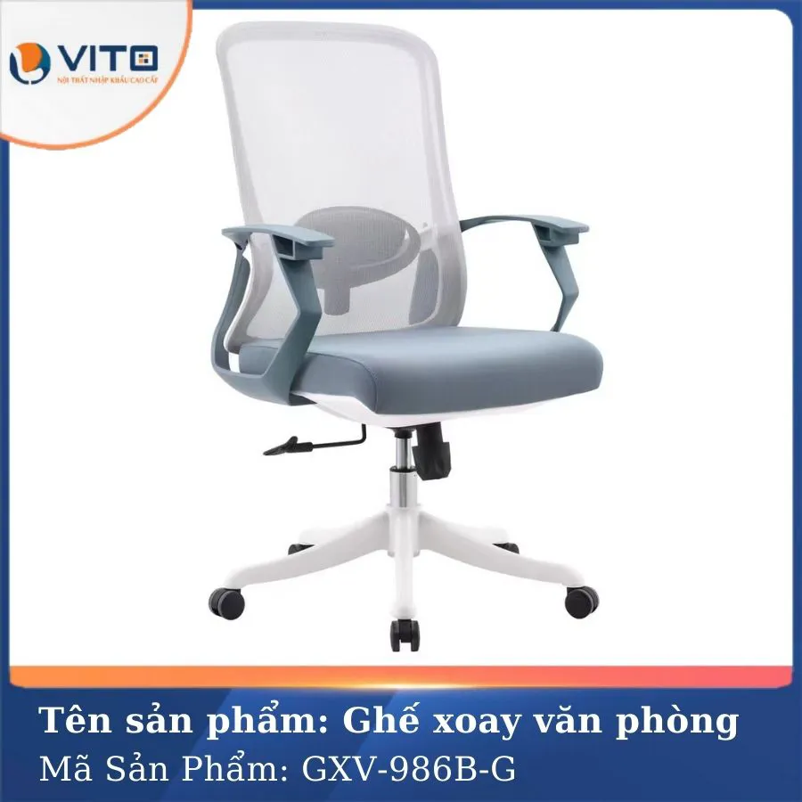 Trong thời đại mà hiệu suất làm việc ngày càng được coi trọng, một chiếc ghế văn phòng không chỉ đơn giản là nơi ngồi làm việc mà còn là người bạn đồng hành bảo vệ sức khỏe cột sống, hỗ trợ tư thế ngồi chuẩn, đồng thời mang lại sự thoải mái tối đa trong suốt ngày dài làm việc. Với mẫu ghế xoay văn phòng GXV-986B-G, Nội thất VITO đã mang đến một giải pháp hoàn hảo, kết hợp giữa thiết kế thông minh, chất liệu cao cấp và tính ứng dụng linh hoạt giúp nâng tầm không gian làm việc của bạn một cách toàn diện. Hãy cùng Vito khám phá chi tiết về chất lượng của mẫu ghế này ngay nhé!