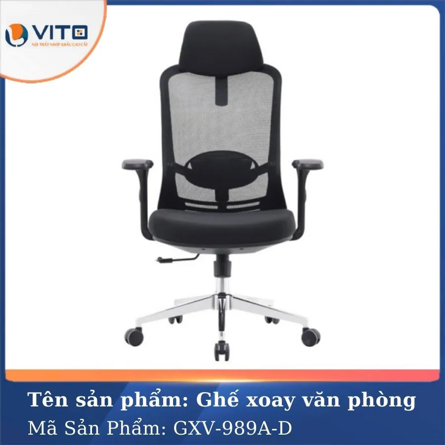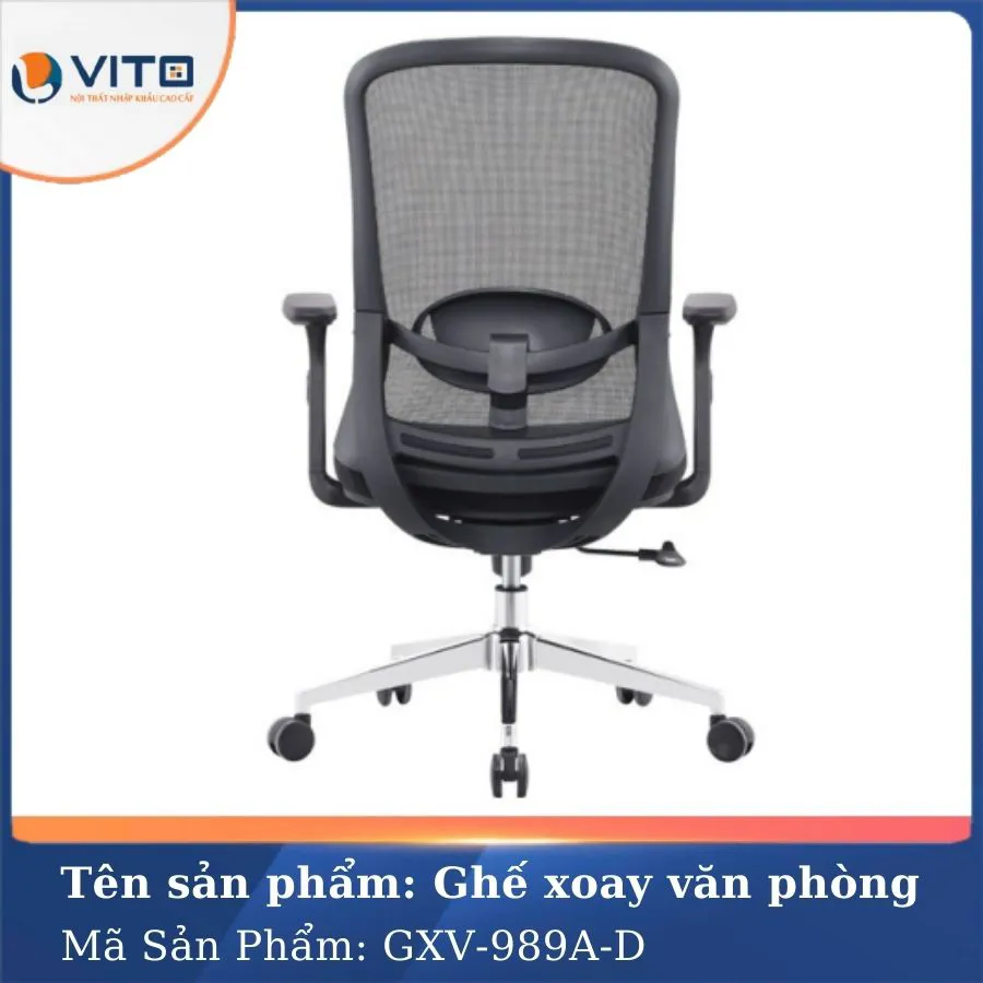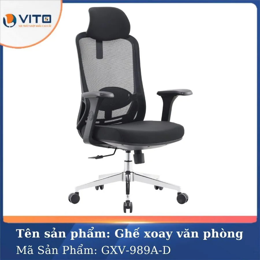 Trong thời đại mà hiệu suất làm việc ngày càng được coi trọng, một chiếc ghế văn phòng không chỉ đơn giản là nơi ngồi làm việc mà còn là người bạn đồng hành bảo vệ sức khỏe cột sống, hỗ trợ tư thế ngồi chuẩn, đồng thời mang lại sự thoải mái tối đa trong suốt ngày dài làm việc. Với mẫu ghế xoay văn phòng GXV-989A-D, Nội thất VITO đã mang đến một giải pháp hoàn hảo, kết hợp giữa thiết kế thông minh, chất liệu cao cấp và tính ứng dụng linh hoạt giúp nâng tầm không gian làm việc của bạn một cách toàn diện. Hãy cùng Vito khám phá chi tiết về chất lượng của mẫu ghế này ngay nhé!