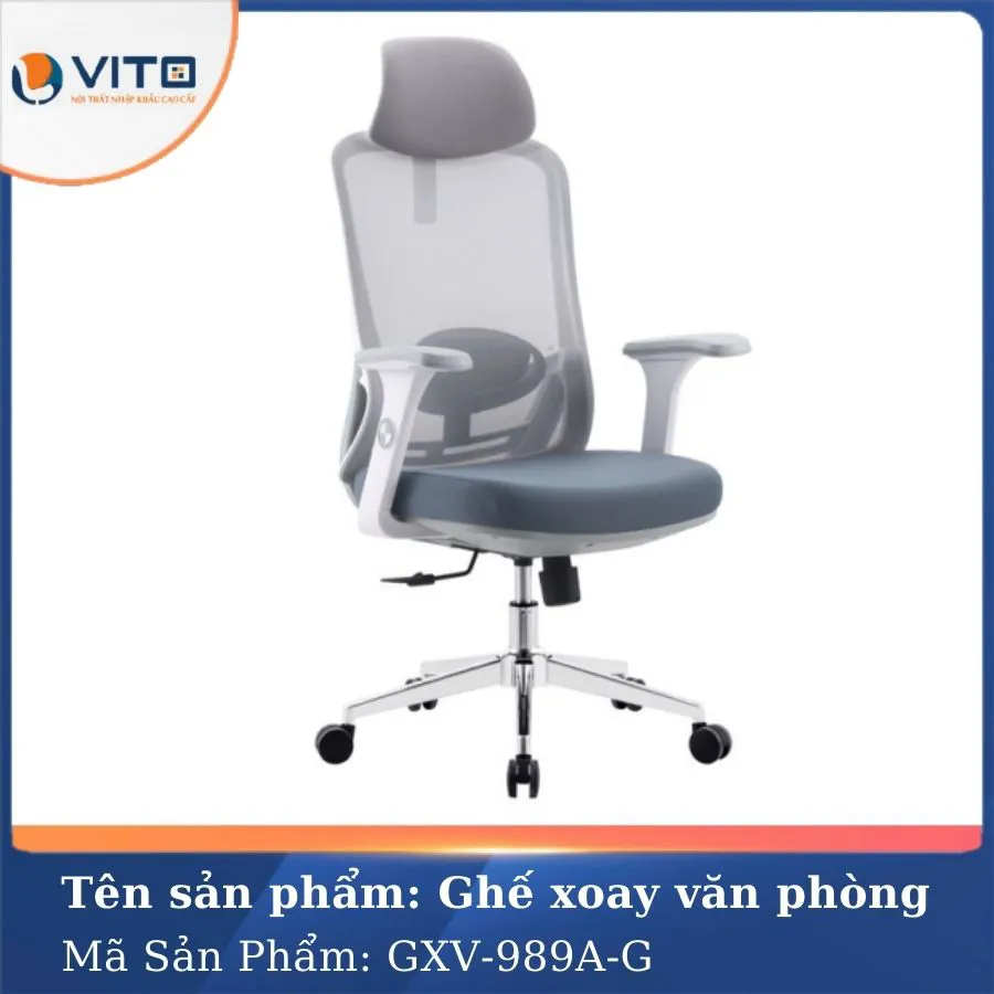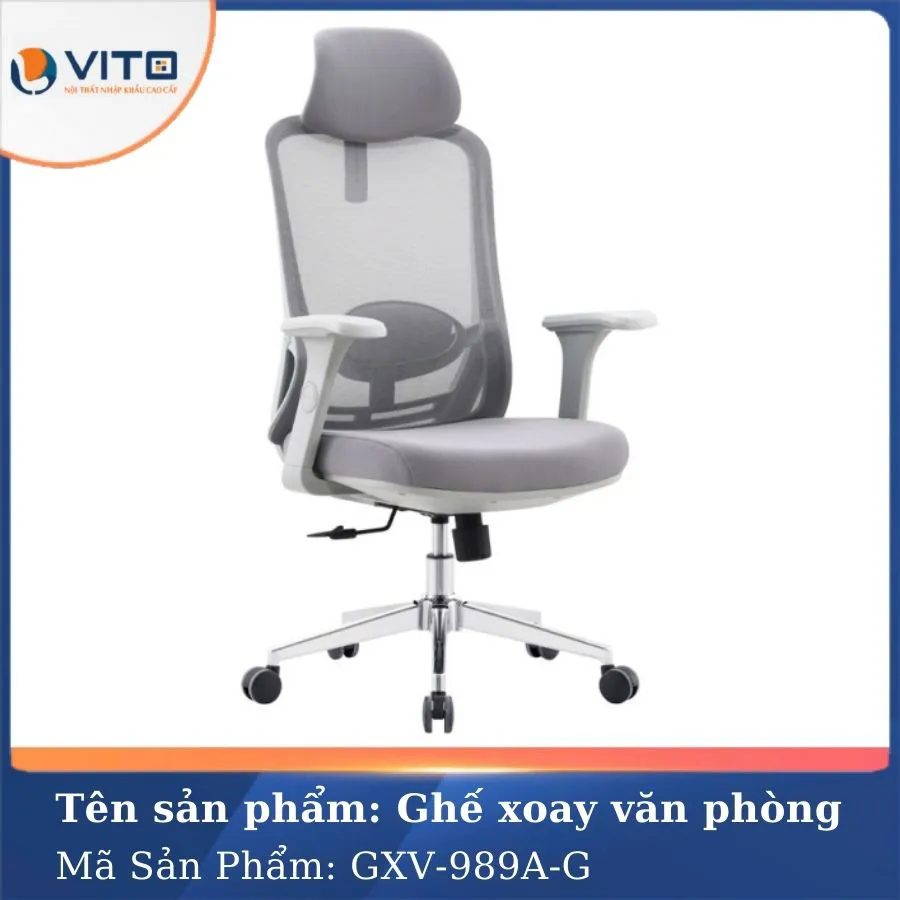 Trong thời đại mà hiệu suất làm việc ngày càng được coi trọng, một chiếc ghế văn phòng không chỉ đơn giản là nơi ngồi làm việc mà còn là người bạn đồng hành bảo vệ sức khỏe cột sống, hỗ trợ tư thế ngồi chuẩn, đồng thời mang lại sự thoải mái tối đa trong suốt ngày dài làm việc. Với mẫu ghế xoay văn phòng GXV-989A-G, Nội thất VITO đã mang đến một giải pháp hoàn hảo, kết hợp giữa thiết kế thông minh, chất liệu cao cấp và tính ứng dụng linh hoạt giúp nâng tầm không gian làm việc của bạn một cách toàn diện. Hãy cùng Nội thất Vito khám phá chi tiết về chất lượng của mẫu ghế này ngay nhé!