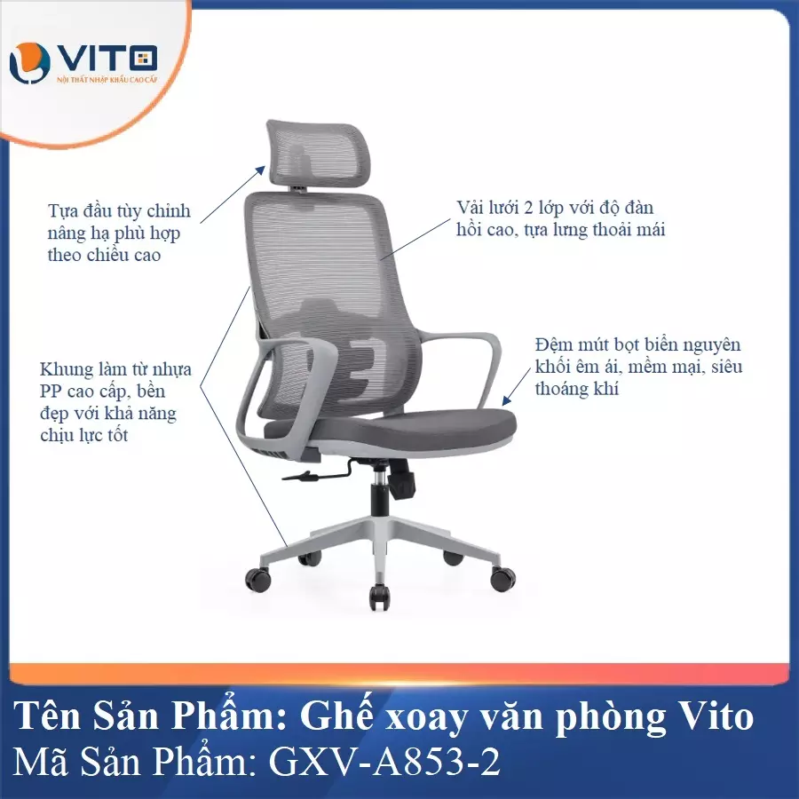 Trong môi trường làm việc hiện đại, việc chọn một chiếc ghế xoay văn phòng không chỉ là để hỗ trợ công việc mà còn là để tạo sự thoải mái và tăng cường hiệu suất làm việc. Ghế Xoay Văn Phòng Vito GXV-A853G từ thương hiệu uy tín Vito là sự kết hợp đẳng cấp và tiện nghi, mang lại trải nghiệm làm việc đẳng cấp và thoải mái cho mọi nhân viên.