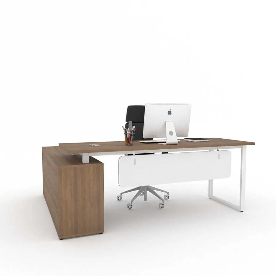 Bàn được trang bị thêm tấm chắn ở mặt trước, vừa giúp tạo sự riêng tư, vừa giúp giảm bớt cảm giác trống trải cho khu vực làm việc. Điều này đặc biệt hữu ích trong môi trường văn phòng mở, nơi nhân viên và lãnh đạo cần có không gian cá nhân riêng để tập trung xử lý công việc.
