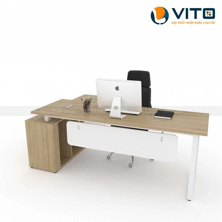 Bàn Giám Đốc Vito Mercury 2m BGDV-M20DT thuộc hệ bàn giám đốc hiện đại, cao cấp, với thiết kế vô cùng tinh tế và độc đáo. Màu sắc trang nhã nhưng không kém phần sang trọng, mang đến sự quyền uy cho người lãnh đạo. Đây là một trong những mẫu bàn giám đốc đang được săn đón nhất hiện nay.