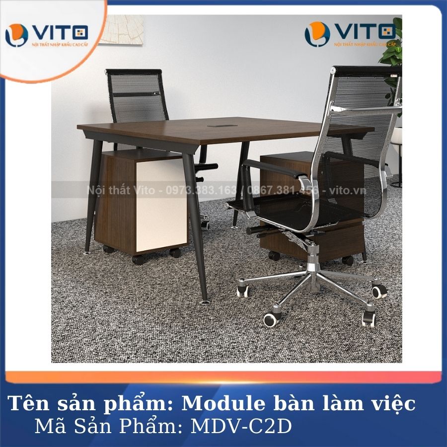 Module bàn làm việc 2 người chân côn Vito MDV-C2D là lựa chọn tuyệt vời giúp nâng cao hiệu suất công việc và tạo cảm giác thoải mái cho người sử dụng. Hãy liên hệ ngay Vito để sở hữu những chiếc bàn làm việc chất lượng nhất nhé!