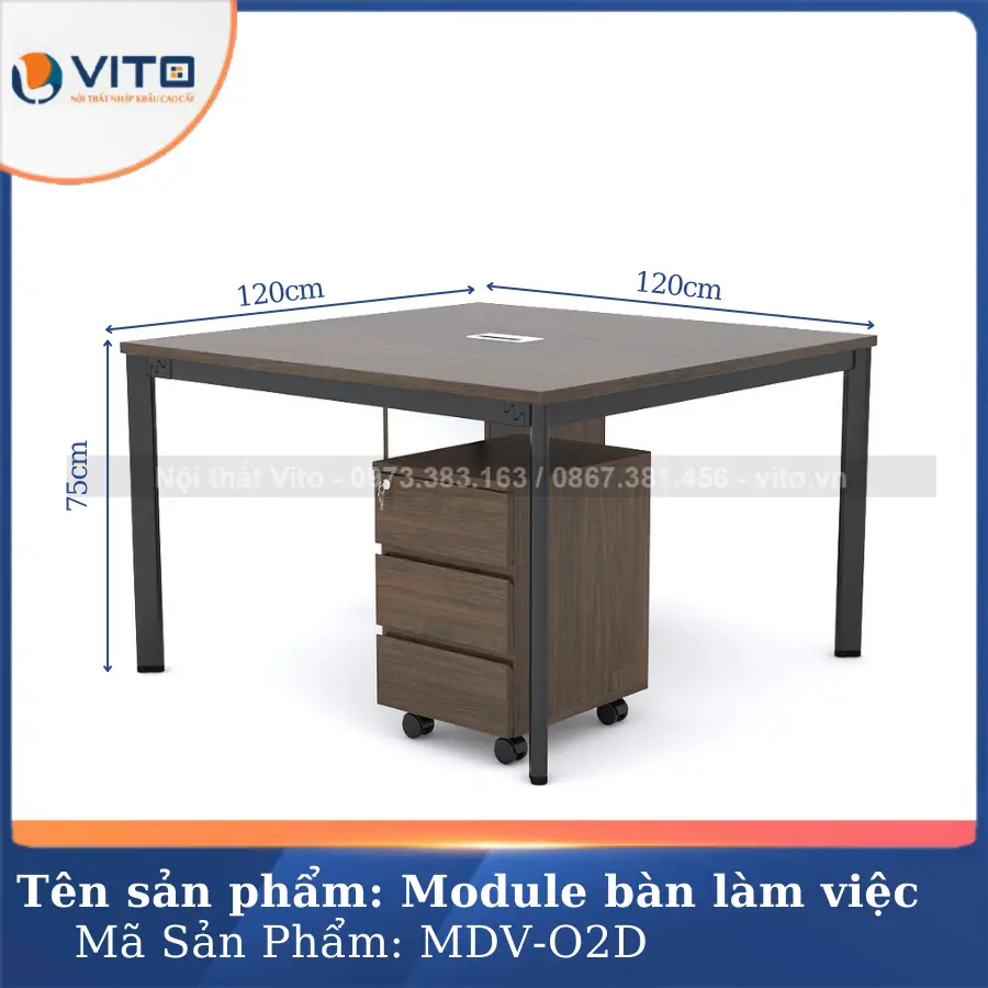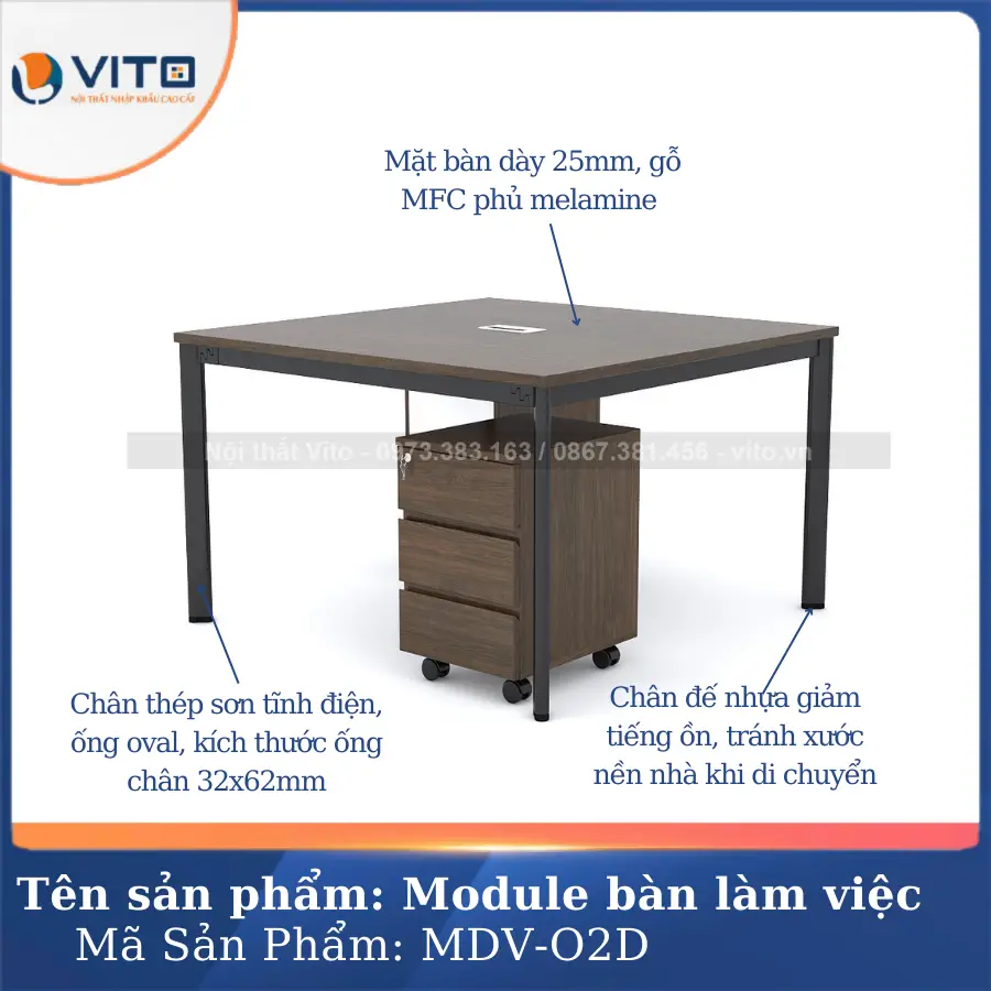 Thông tin chi tiết Module bàn làm việc 2 người chân oval Vito MDV-O2D: