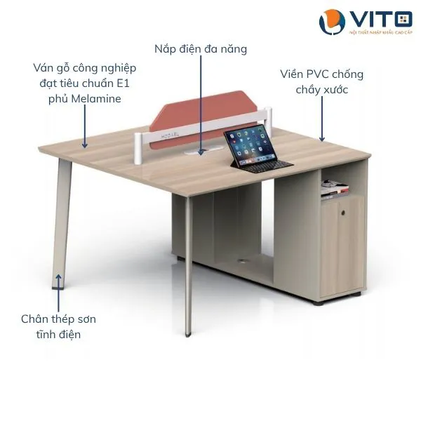 Trong môi trường làm việc hiện đại, việc tối ưu hóa không gian và tạo ra môi trường làm việc thoải mái, chuyên nghiệp luôn là ưu tiên hàng đầu của các doanh nghiệp. Mẫu Module bàn làm việc 2 người MDV-PF029-2 là một trong những lựa chọn lý tưởng cho văn phòng hiện đại, mang đến sự tiện nghi và tính thẩm mỹ cao. Hãy cùng Nội Thất Văn Phòng Vito khám phá sản phẩm Module bàn làm việc này ngay nhé!