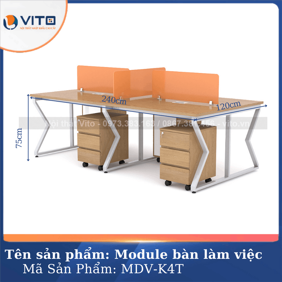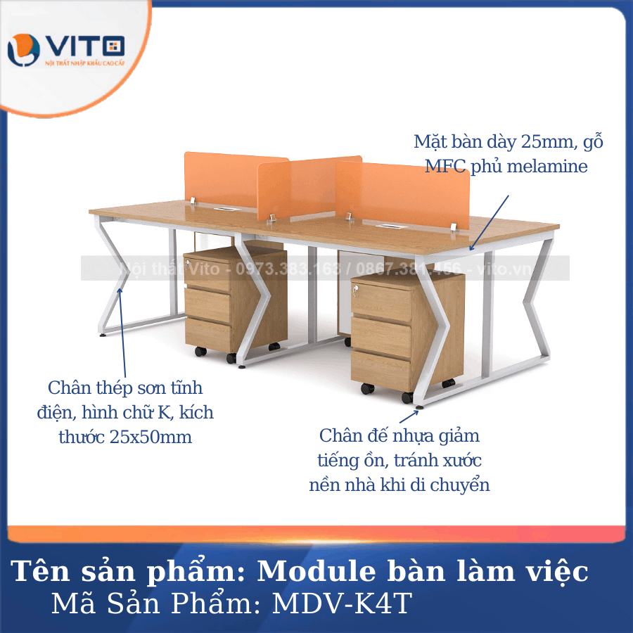 Thông tin chi tiết của Module bàn làm việc 4 người chân chữ K Vito MDV-K4T