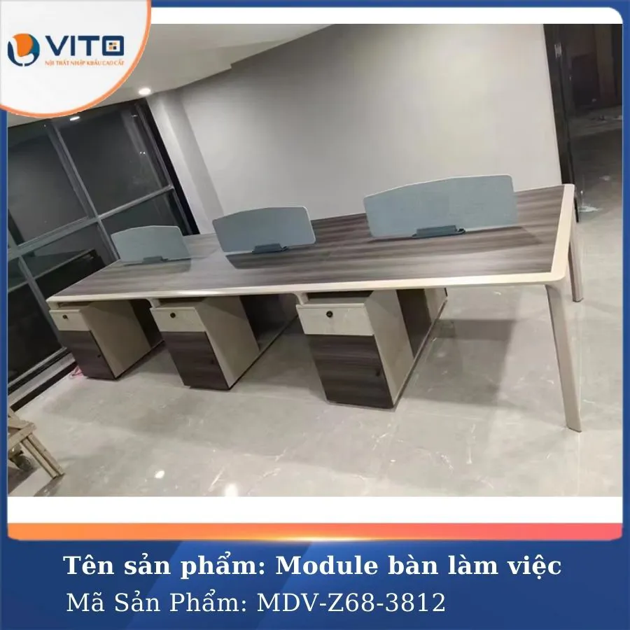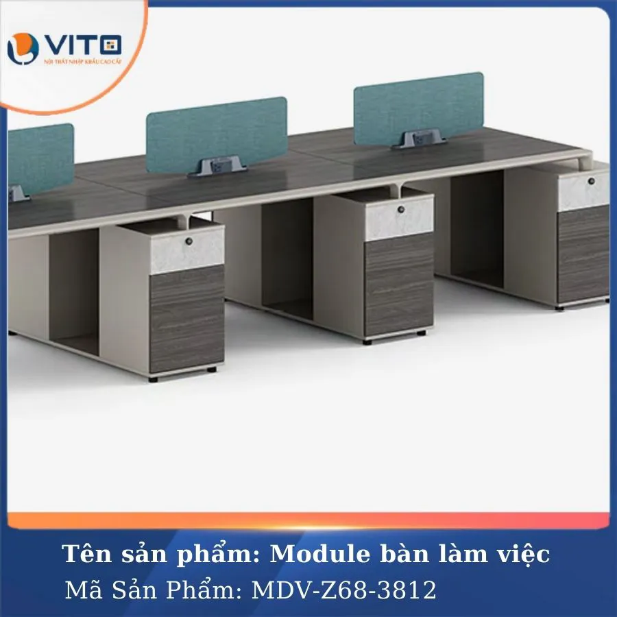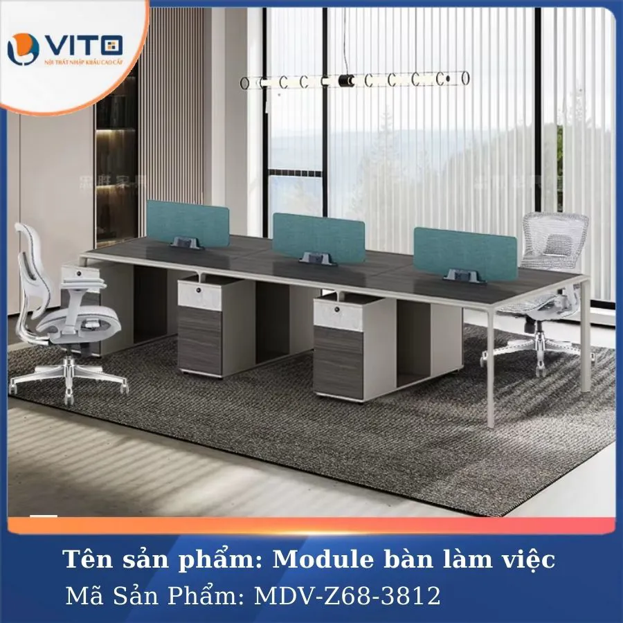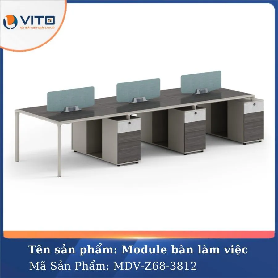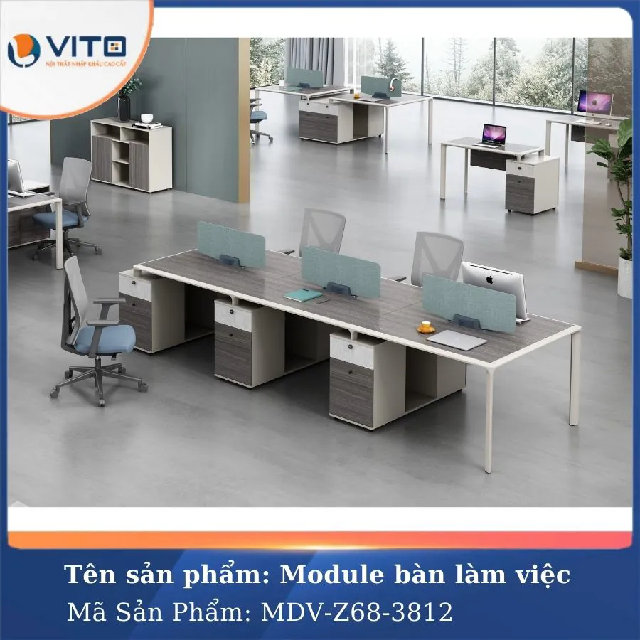 Trong môi trường làm việc hiện đại, việc tối ưu hóa không gian và tạo ra môi trường làm việc thoải mái, chuyên nghiệp luôn là ưu tiên hàng đầu của các doanh nghiệp. Mẫu module bàn làm việc 6 người MDV-Z68-3812 là một trong những lựa chọn lý tưởng cho văn phòng hiện đại, mang đến sự tiện nghi và tính thẩm mỹ cao. Hãy cùng Nội Thất Văn Phòng Vito khám phá ngay mẫu Module bàn làm việc này ngay nhé!
