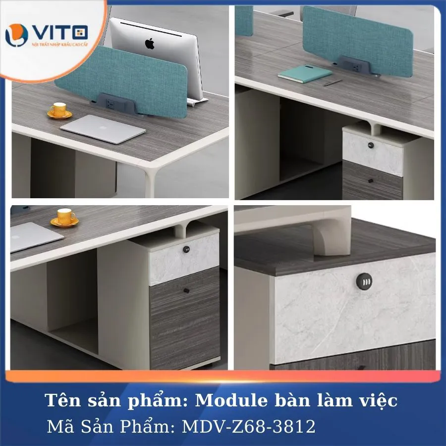 Nếu bạn đang tìm kiếm một mẫu bàn làm việc hiện đại, bền bỉ và tiện dụng, module bàn làm việc MDV-Z68-38122 chính là lựa chọn lý tưởng. Không chỉ giúp tối ưu không gian, sản phẩm này còn mang đến sự thoải mái, hỗ trợ người dùng làm việc hiệu quả hơn. Với thiết kế sang trọng, chất liệu cao cấp và công năng vượt trội, mẫu bàn làm MDV-Z68-3812 là một mảnh ghép vô cùng hoàn hảo cho không gian làm việc của bạn. Hãy liên hệ ngay Vito để sở hữu cho mình những chiếc bàn làm việc hiện đại, chất lượng nhất nhé!