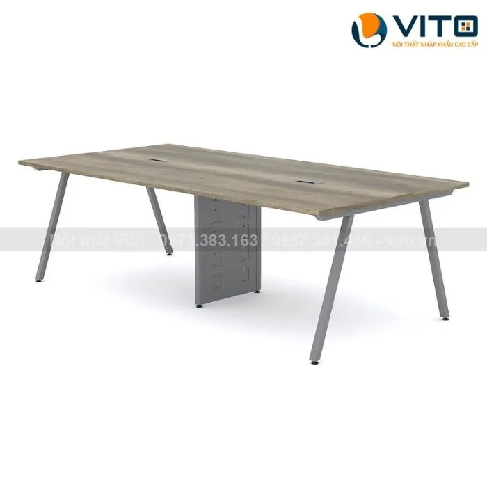 Mặt bàn được gia công từ gỗ công nghiệp cao cấp, có phủ lớp Melamine chống thấm nước và chống trầy xước. Điều này không chỉ giúp mặt bàn bền đẹp theo thời gian mà còn dễ dàng lau chùi, vệ sinh. Đây là loại vật liệu không chỉ có độ bền cao mà còn chống trầy xước, chống thấm nước và dễ dàng vệ sinh. Khung chân bàn được làm từ sắt sơn tĩnh điện cao cấp, có khả năng chịu lực tốt và không bị ăn mòn theo thời gian. Thiết kế chân bàn dạng chữ A giúp tăng độ vững chắc và ổn định cho bàn, đồng thời tạo sự thông thoáng cho không gian bên dưới. Chân bàn còn được trang bị các miếng đệm cao su giúp giảm tiếng ồn khi di chuyển và bảo vệ sàn nhà khỏi trầy xước.