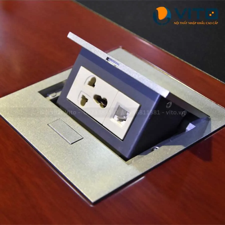 Nắp bàn với tiết diện rộng, tích hợp sẵn ổ cắm và 1 cổng kết nối dây mạng tiện lợi