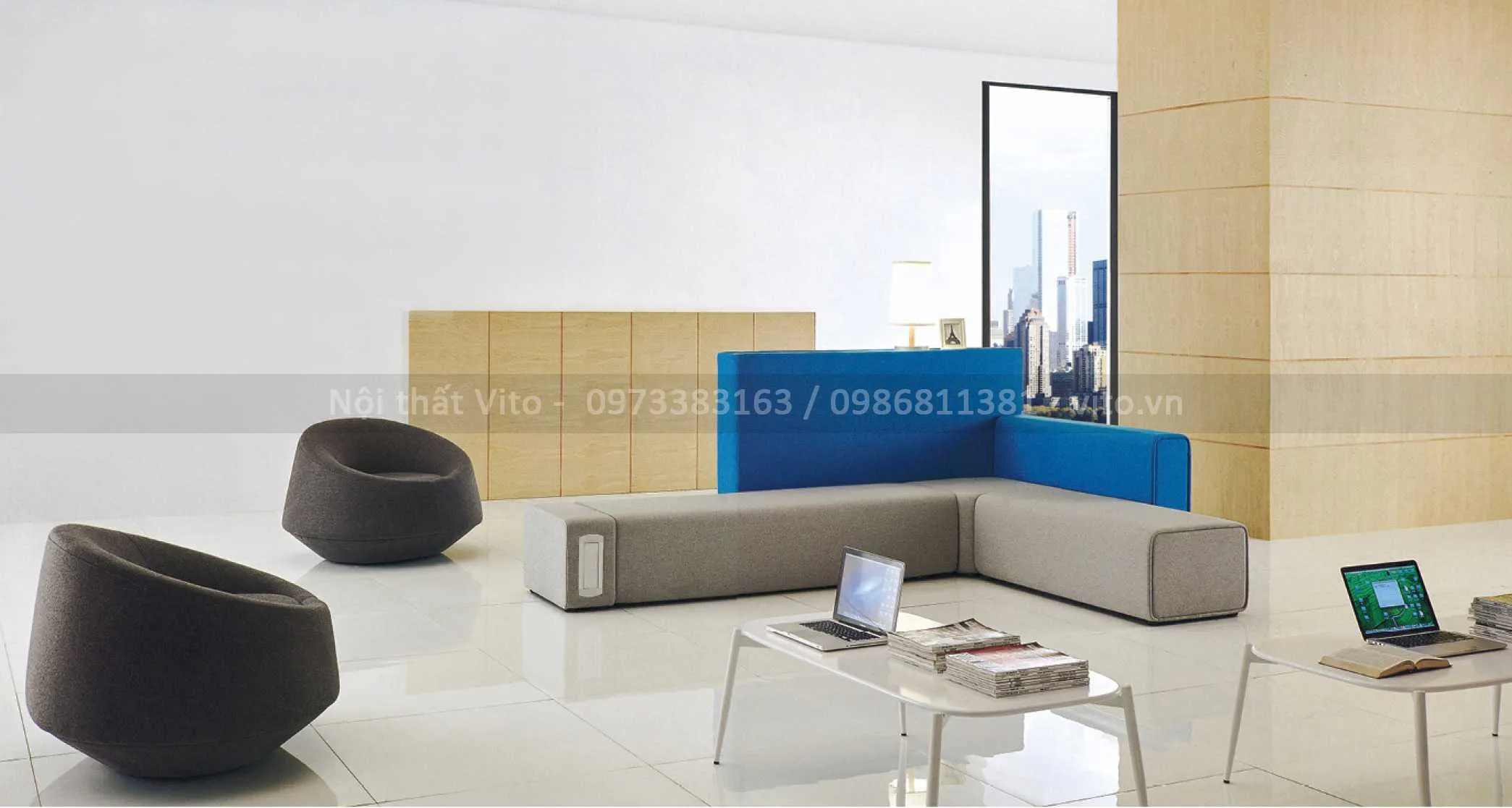 Sofa Văn Phòng Vito SFV-K-6661 là một bộ sản phẩm sofa bao gồm nhiều các chi tiết, thuộc dòng sofa văn phòng hiện đại thích hợp đặt tại các sảnh hoặc khu vực pantry văn phòng. Sản phẩm với thiết kế dài và chắc chắn với diện tích ngồi lớn, ngoài ra mẫu sofa này còn có thiết kế ổ cắm điện ẩn thông minh, có thể sử dụng để sạc điện thoại hoặc máy tính.