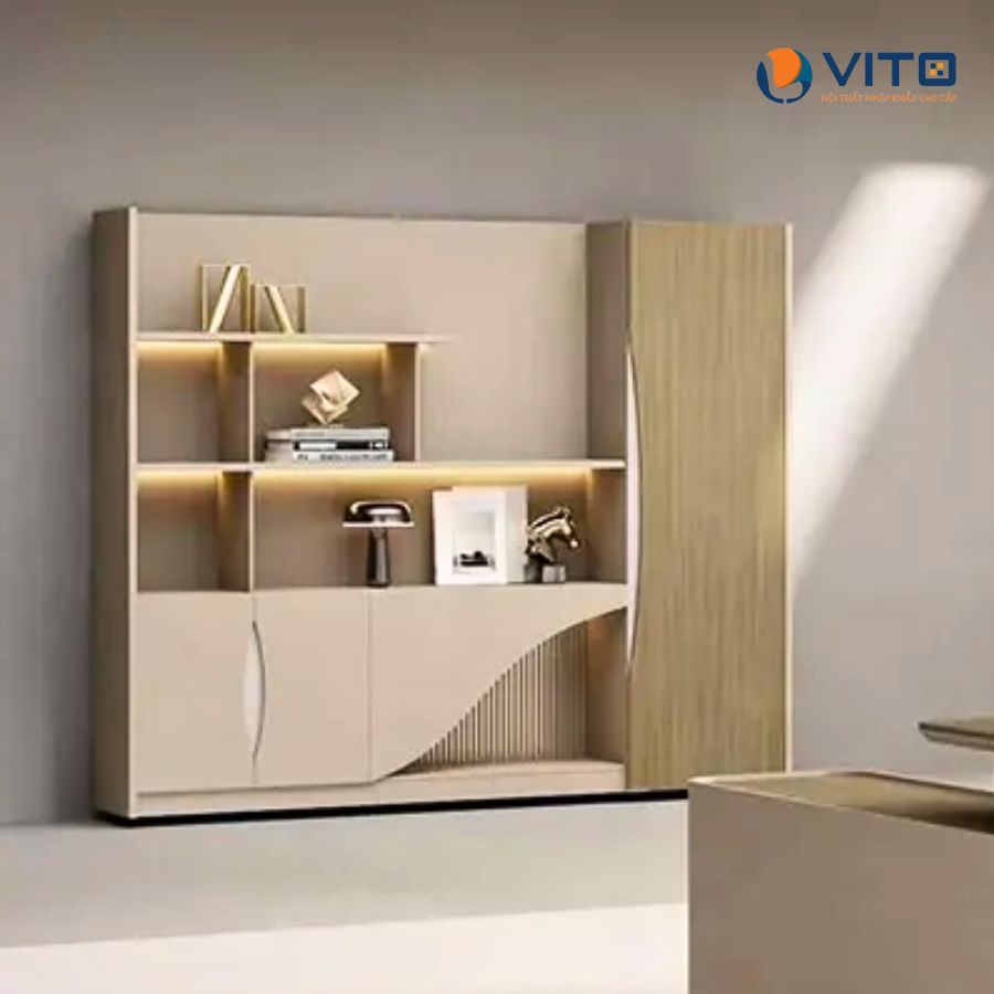 Tủ giám đốc Vito TGDV-S103 thiết kế với nhiều ngăn đựng, phù hợp để lưu trữ tài liệu, hồ sơ quan trọng của giám đốc. Các ngăn kệ mở cho phép người dùng trưng bày những vật phẩm trang trí như sách, bình hoa, hoặc các vật dụng khác, tạo điểm nhấn cho không gian phòng làm việc.