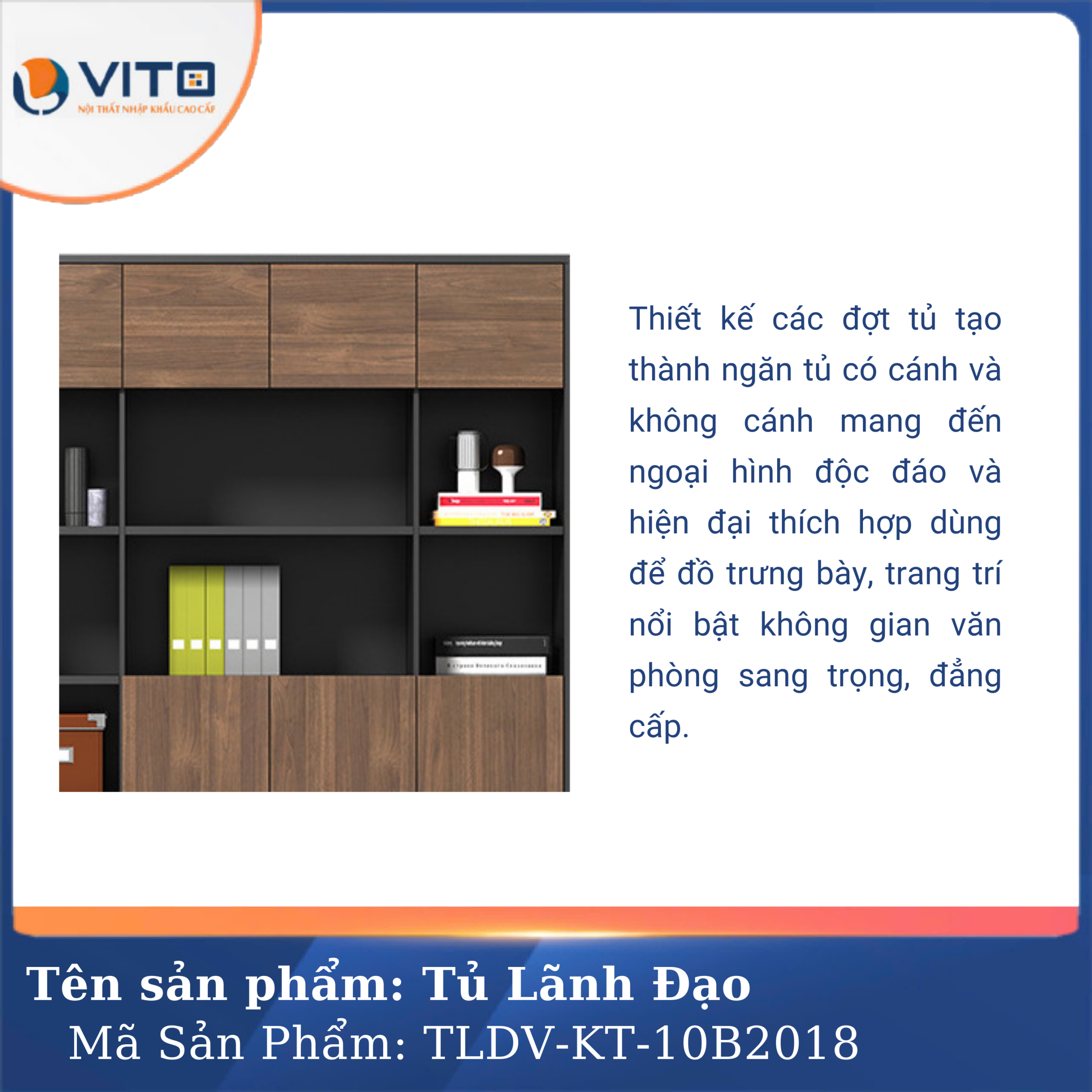 Tủ tài liệu lãnh đạo Vito TLDV-KT-10B2018 mang đến diện mạo sang trọng, đẳng cấp cho không gian làm việc cùng thiết kế liền khối cùng các đường nét tinh tế, góc cạnh vuông vức toát lên vẻ đẹp mạnh mẽ, quyền lực, khẳng định vị thế của người đứng đầu.
