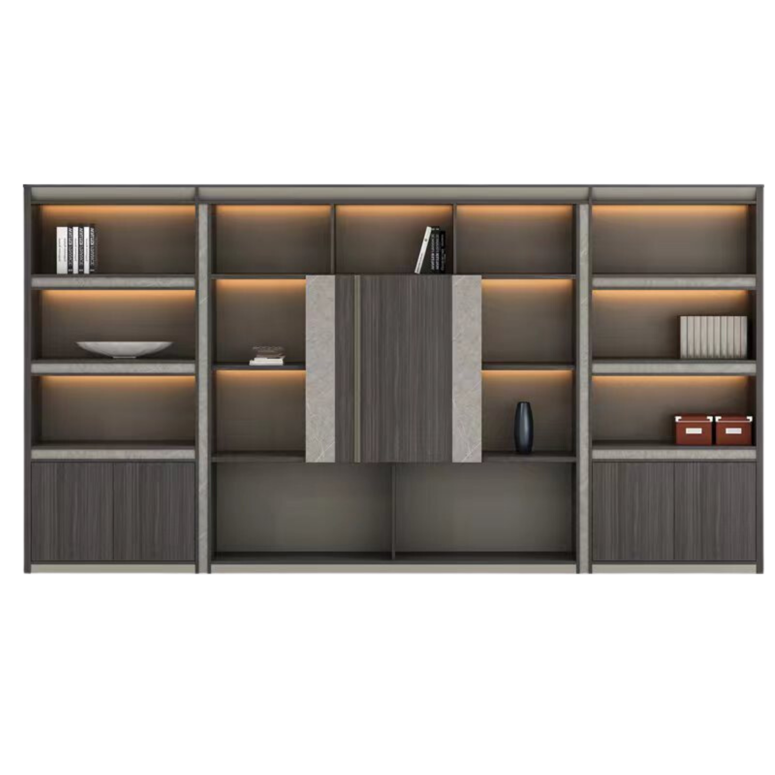 Tủ thiết kế hiện đại, kết hợp giữa tủ trang trí và tủ tài liệu điểm nhấn cho không gian văn phòng lãnh đạo.