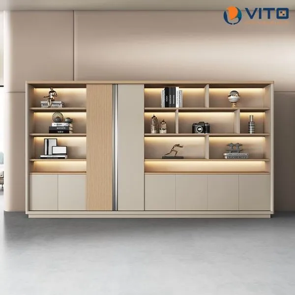 Tủ lãnh đạo Vito TLDV-JK2420C được thiết kế với nhiều ngăn đựng, phù hợp để lưu trữ tài liệu, hồ sơ quan trọng của giám đốc. Các ngăn kệ mở cho phép người dùng trưng bày những vật phẩm trang trí như sách, bình hoa, hoặc các vật dụng khác, tạo điểm nhấn cho không gian phòng làm việc.