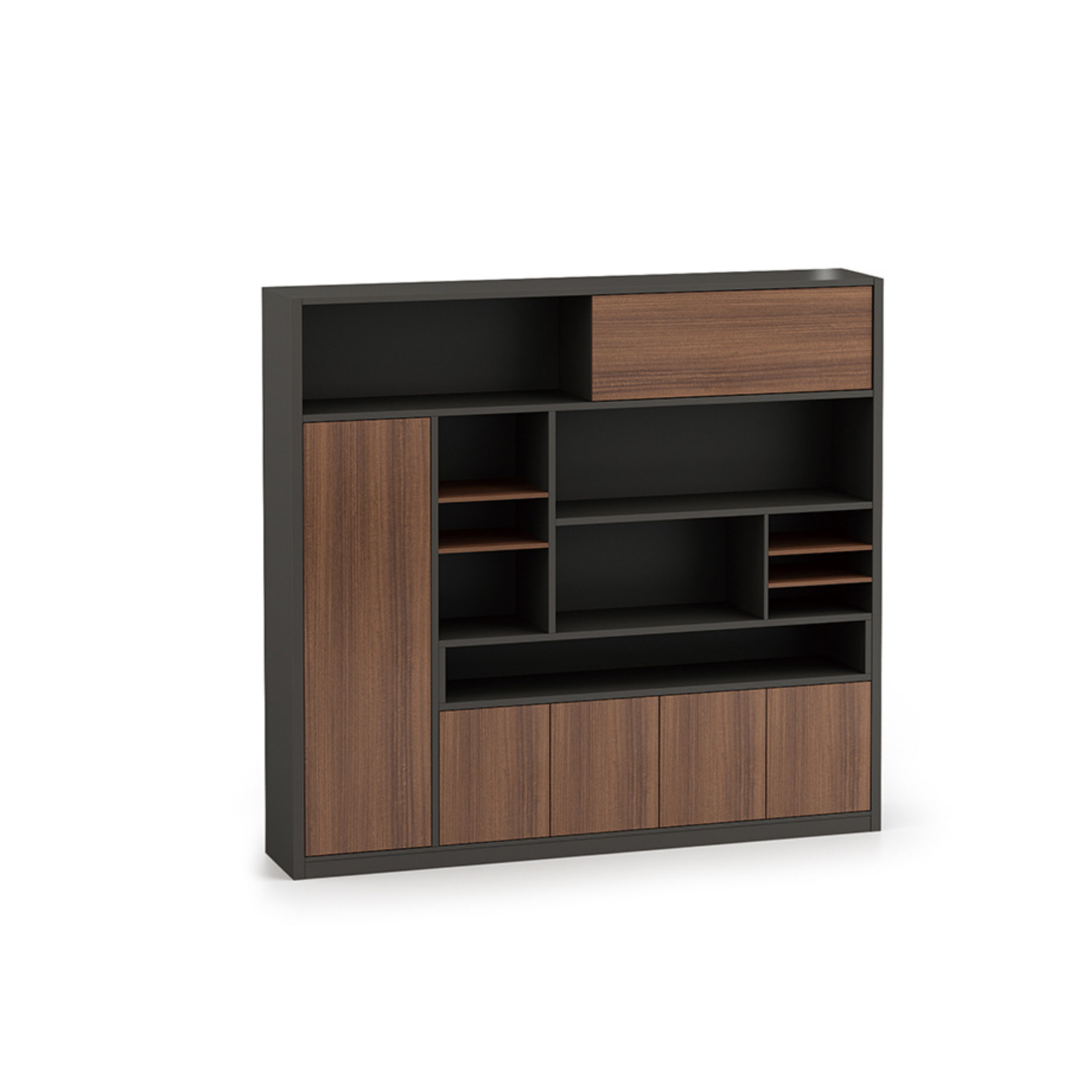 Tủ thiết kế hiện đại, kết hợp giữa tủ trang trí và tủ tài liệu điểm nhấn cho không gian văn phòng lãnh đạo.