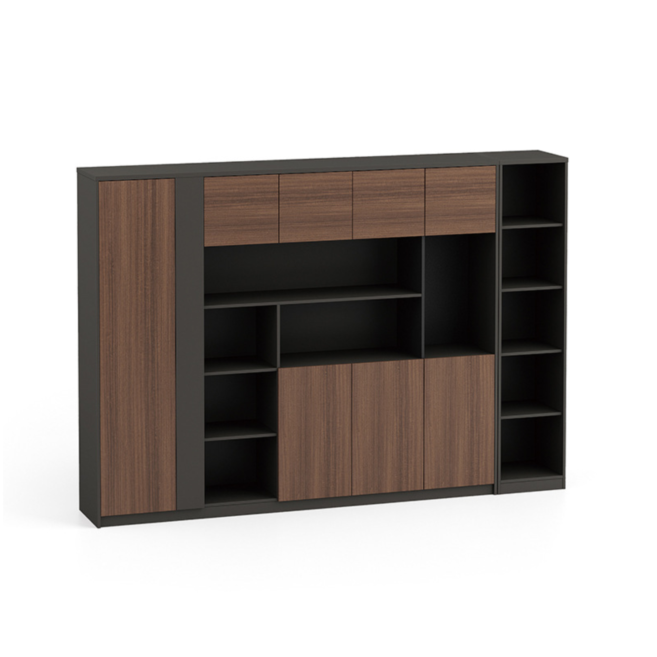 Tủ thiết kế hiện đại, kết hợp giữa tủ trang trí và tủ tài liệu điểm nhấn cho không gian văn phòng lãnh đạo.