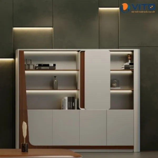 Ngoài khả năng lưu trữ hồ sơ, Tủ lãnh đạo Vito TLDV-QJ-02WJG24 còn có thể được sử dụng để trưng bày vật phẩm trang trí, quà tặng, bằng khen hay kỷ niệm chương. Đây là cách giúp phòng lãnh đạo thêm phần ấn tượng, đồng thời khẳng định dấu ấn cá nhân.
