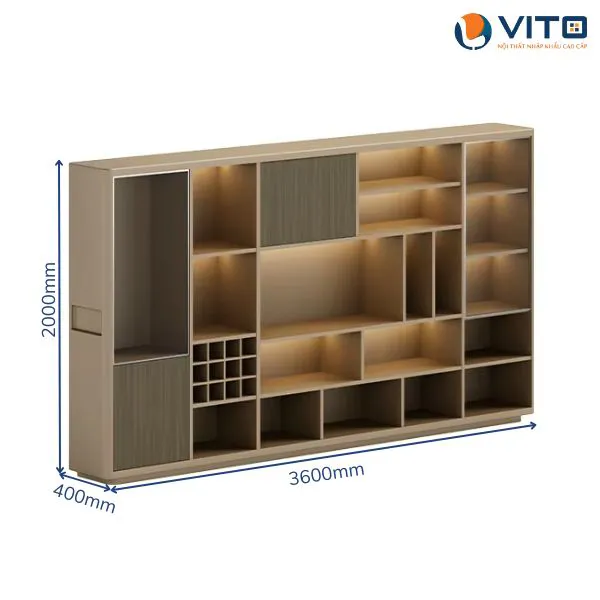 Tủ lãnh đạo Vito TLDV-S205 được thiết kế với nhiều ngăn đựng, phù hợp để lưu trữ tài liệu, hồ sơ quan trọng của giám đốc. Các ngăn kệ mở cho phép người dùng trưng bày những vật phẩm trang trí như sách, bình hoa, hoặc các vật dụng khác, tạo điểm nhấn cho không gian phòng làm việc.
