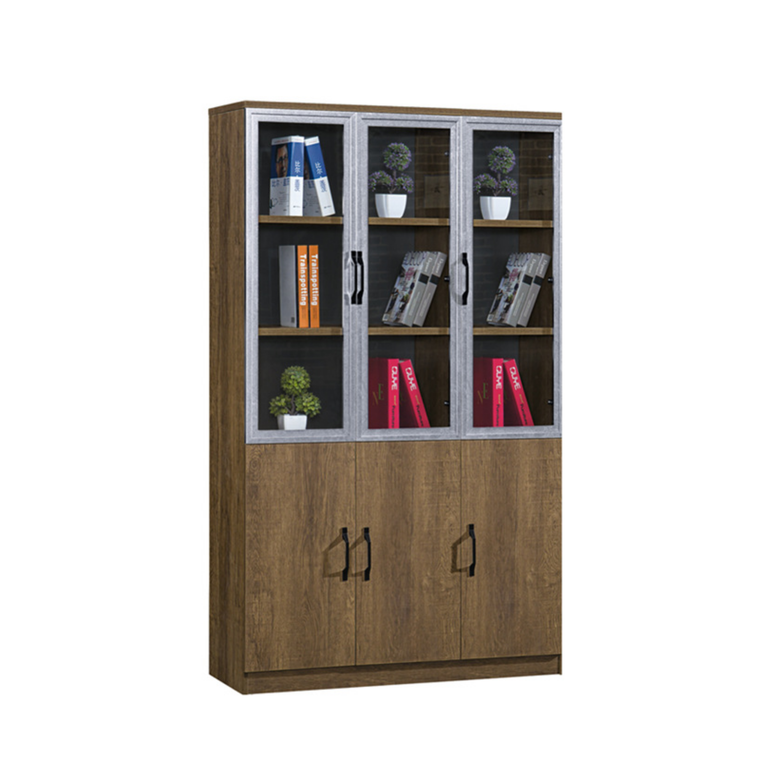 | Đặc điểm | Sử dụng ván gỗ MDF phủ Melamine, đạt tiêu chuẩn E1 Châu Âu, được xử lý chống côn trùng, chống ăn mòn và xử lý sấy, an toàn cho người sử dụng, thân thiện với môi trường. Vân gỗ màu nâu sang trọng, kết hợp cửa kính màu đen mờ đen tạo điểm nhấn độc đáo. Viền bao quanh sử dụng PVC với lớp keo nóng nhập khẩu chất lượng cao. Thiết kế hiện đại cùng bố cục khác lạ, phân chia các đợt giúp trang trí dễ dàng hơn. Thiết kế 3 cánh chia làm 9 ô và 3 ngăn lớn bên dưới tiện lợi, tăng không gian cất trữ, 3 cánh bằng kính có tay nắm chắc chắn giúp đóng mở dễ dàng. Phụ kiện đi kèm bao gồm: Bản lề giảm chấn nhập khẩu, khóa gấp tiện lợi, hệ cam liên kết. |