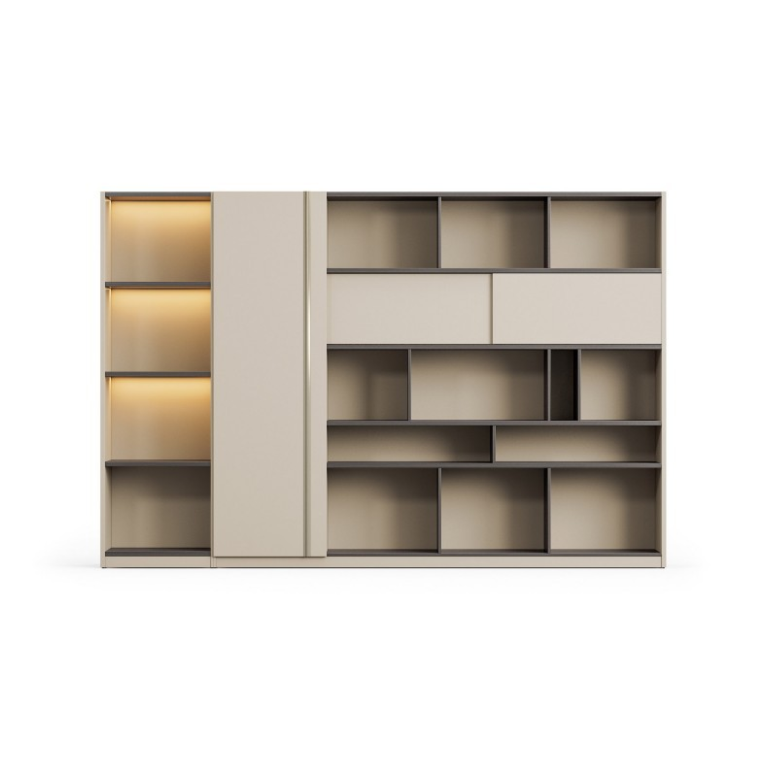 Thiết kế hiện đại, kết hợp giữa tủ trang trí và tủ tài liệu điểm nhấn cho không gian văn phòng lãnh đạo.