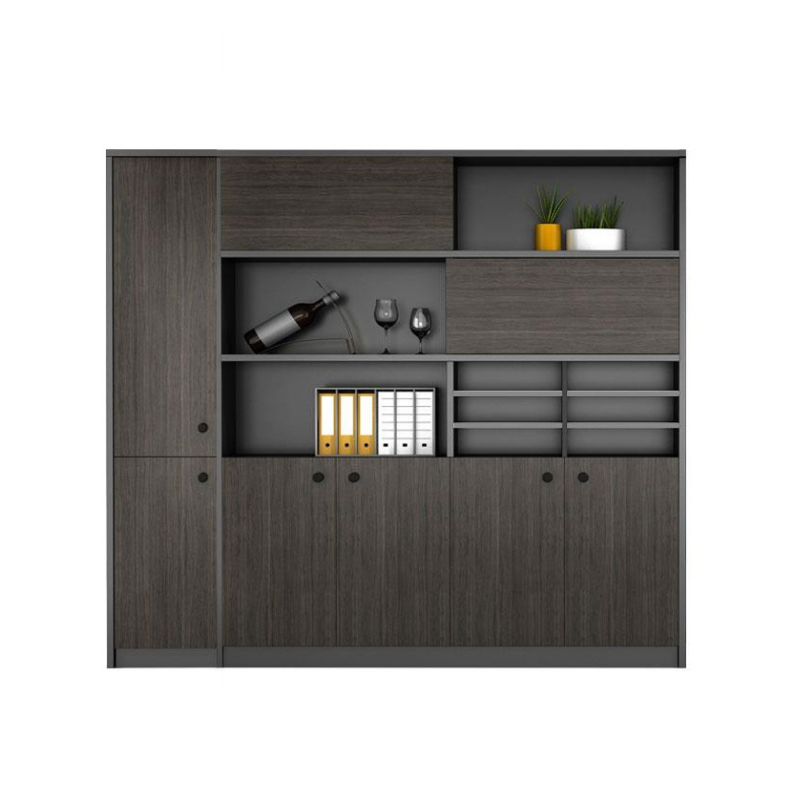 Tủ TLDV-08W20 thiết kế hiện đại, kết hợp giữa tủ trang trí và tủ tài liệu điểm nhấn cho không gian văn phòng lãnh đạo.