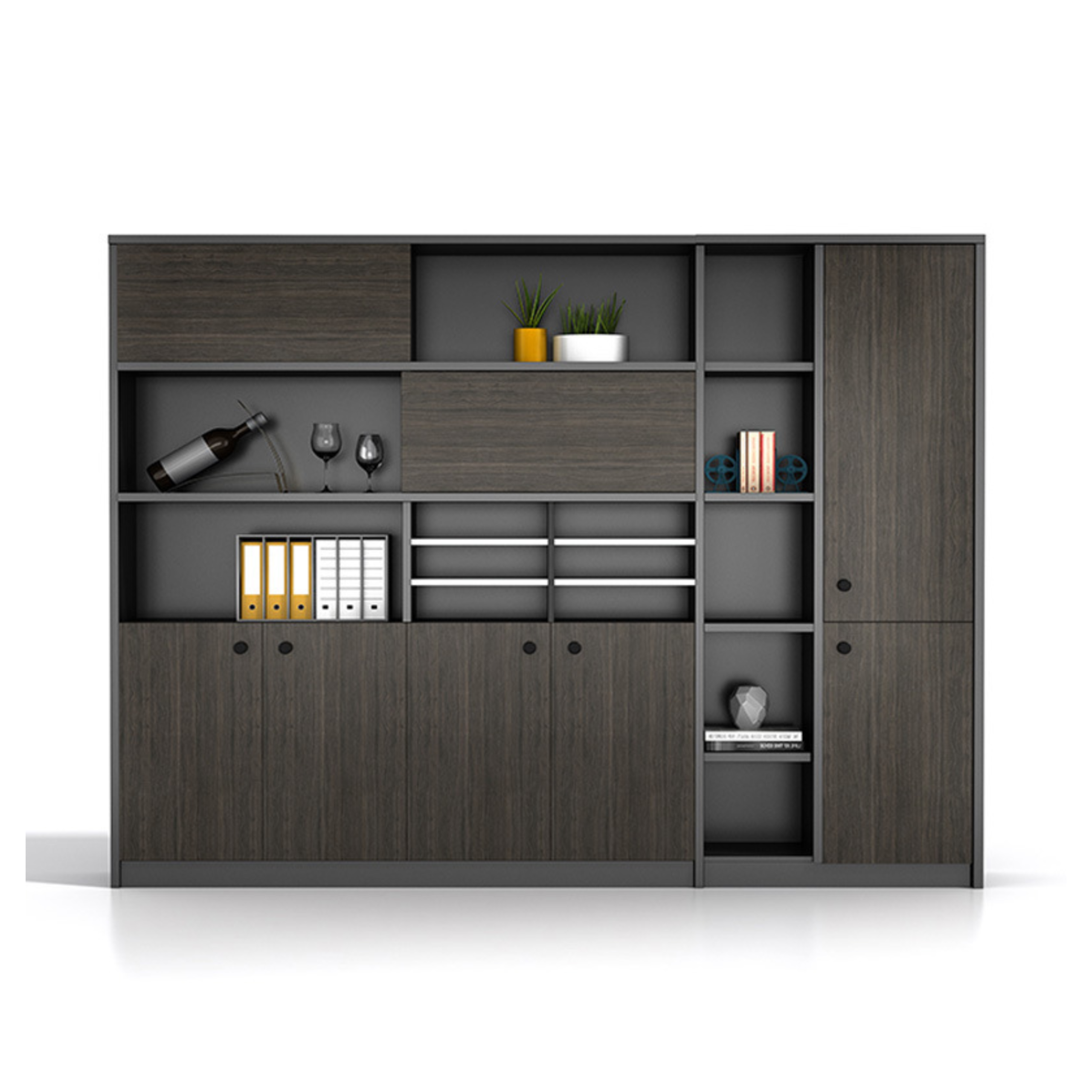 Tủ TLDV-08W24 thiết kế hiện đại, kết hợp giữa tủ trang trí và tủ tài liệu điểm nhấn cho không gian văn phòng lãnh đạo.