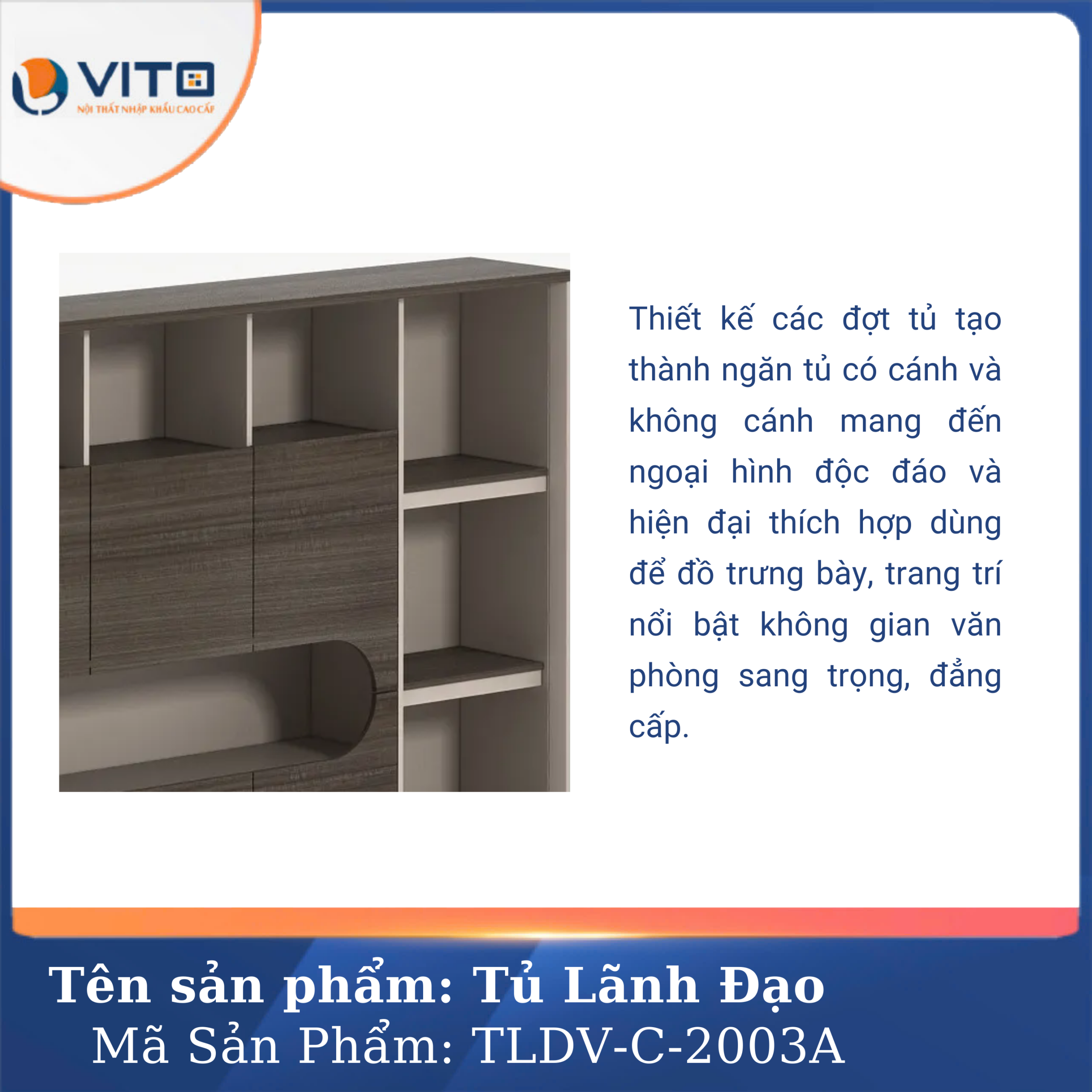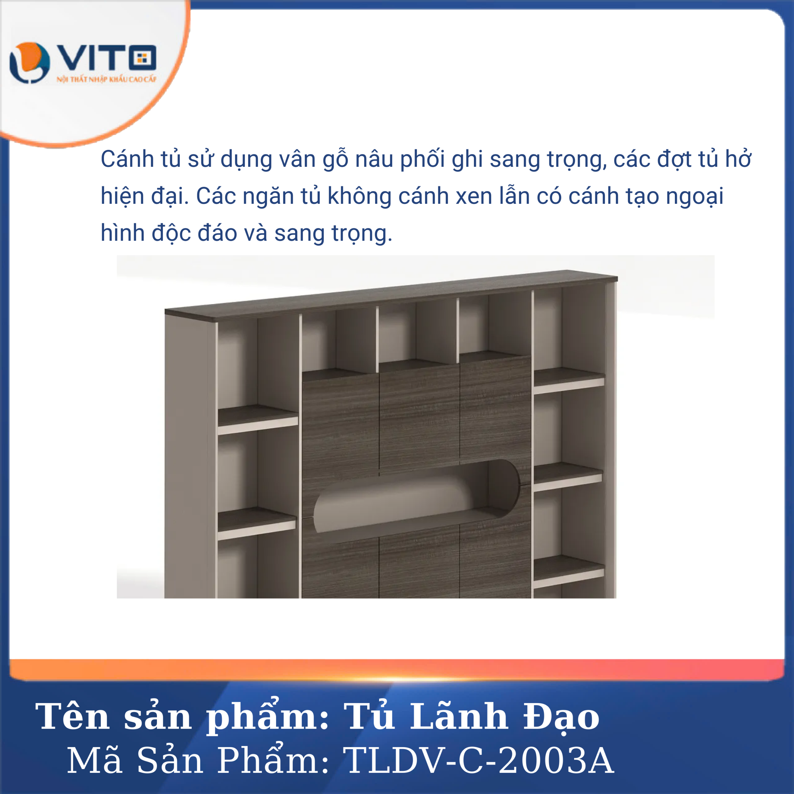 Trong môi trường làm việc hiện đại, tủ tài liệu không chỉ đơn thuần là nơi lưu trữ giấy tờ mà còn là biểu tượng của sự chuyên nghiệp và đẳng cấp. Tủ tài liệu lãnh đạo Vito TLDV-C-2003A thiết kế sang trọng, khẳng định đẳng cấp của người đứng đầu doanh nghiệp. Sản phẩm được nhập khẩu và phân phối chính hãng bởi Vito, kiến tạo không gian phòng lãnh đạo sự tiện nghi, đẳng cấp. Cùng Vito khám phá ngay Tủ tài liệu lãnh đạo Vito TLDV-C-2003A nhé!