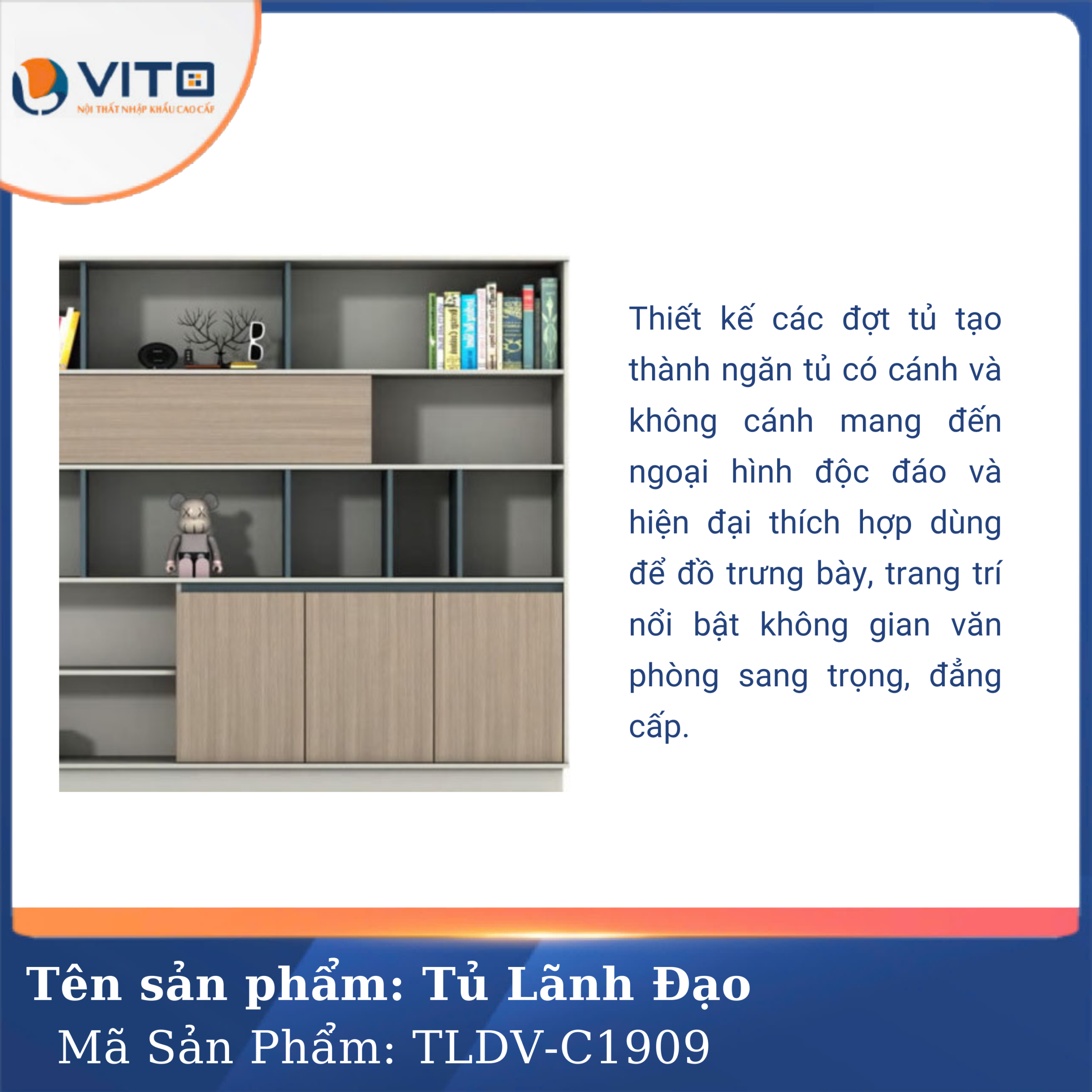 Tủ TLDV-C1909 thiết kế hiện đại, kết hợp giữa tủ trang trí và tủ tài liệu điểm nhấn cho không gian văn phòng lãnh đạo.
