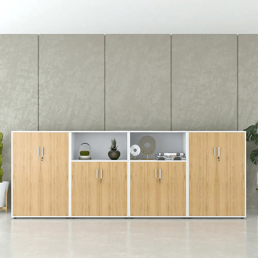 | Kiểu dáng | Thiết kế hiện đại gồm 4 tủ cánh mở nối liền nhau. Mỗi tủ được trang bị chìa khoá thuận tiện lưu trữ đồ dùng và tài liệu quan trọng. Ở giữa có 2 ngăn trống để tài liệu thường xuyên sử dụng. Phía trên tủ có thể tận dụng để các vật phẩm văn phòng và đồ decor khác. |