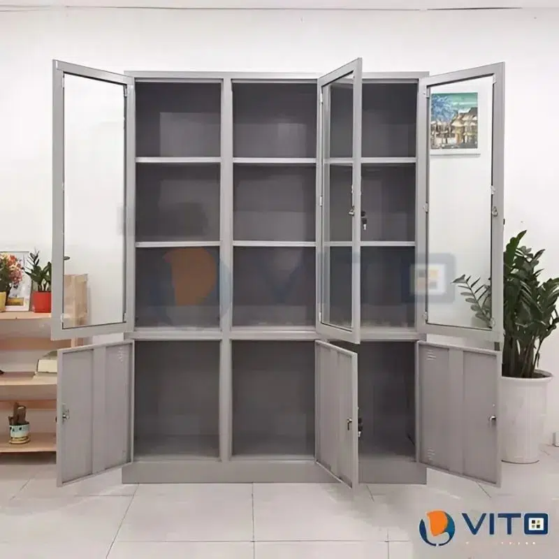 Tủ sắt được chia thành hai phần với phần trên là các cánh kính, phần dưới là cánh sắt kín. Phần trên được chia thành hai đợt dễ dàng phân chia tài liệu hay dùng. Ngoài ra cửa kính còn giúp xác định phương hướng tài liệu dễ dàng hơn