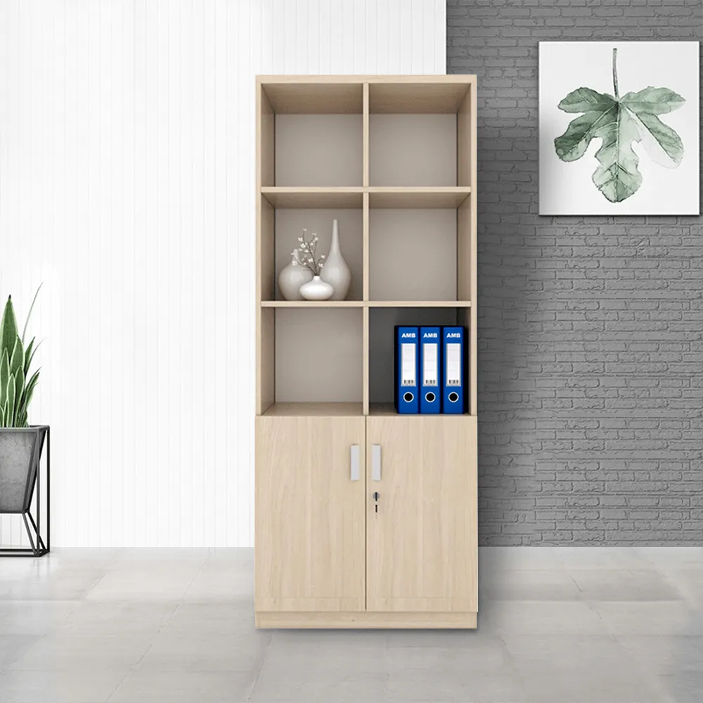 – Thiết kế 2 cánh cửa đóng kín có tay cầm ở ngăn dưới cùng giúp cất giữ tài liệu, đồ dùng cá nhân khoa học, ngăn nắp hơn. 3 ngăn tủ hở phía trên có thể dùng trang trí đồ decor văn phòng hoặc để hồ sơ, giấy tờ.