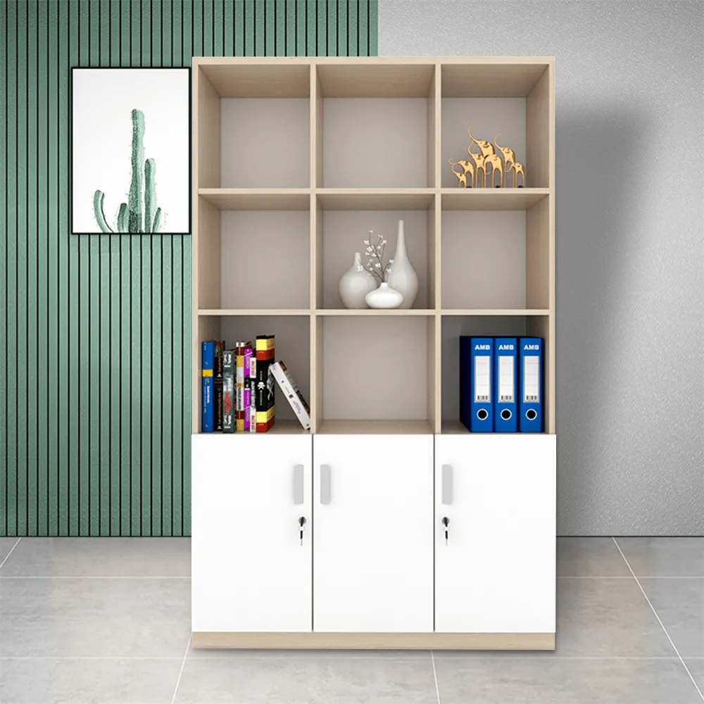 – Tủ thiết kế phía trên có chia thành 9 ô dùng để đồ trang trí hoặc tài liệu có tính thẩm mỹ cao, phía dưới có 3 cánh kín có tay nắm để tiện dụng cho người dùng mở cánh tủ, có khóa tủ nâng cao tính bảo mật.